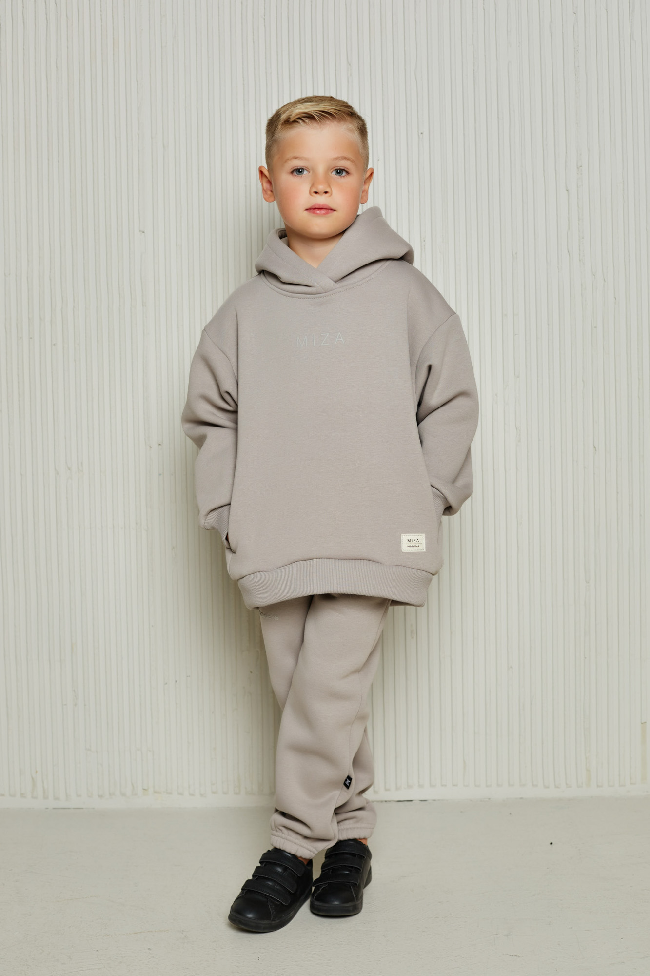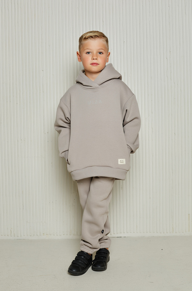 Состоит из объёмного худи с двойным капюшоном и боковыми карманами и брюк-джогеров.