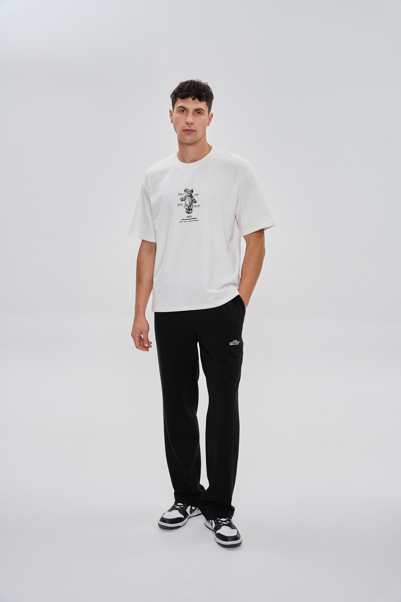Костюм состоит из базового футболки прямого кроя и брюк.