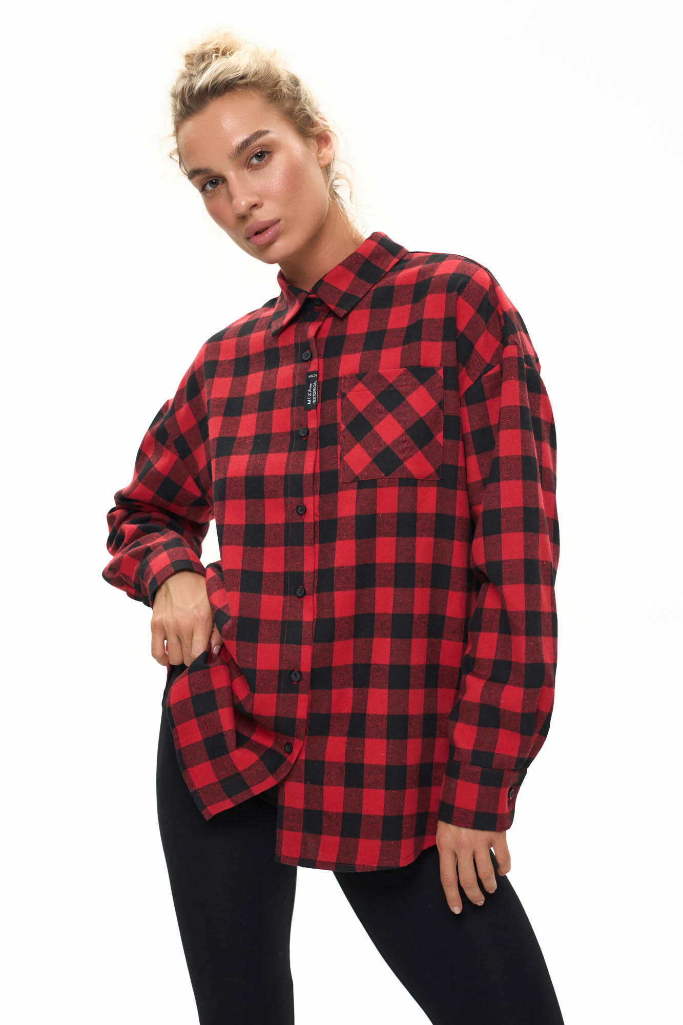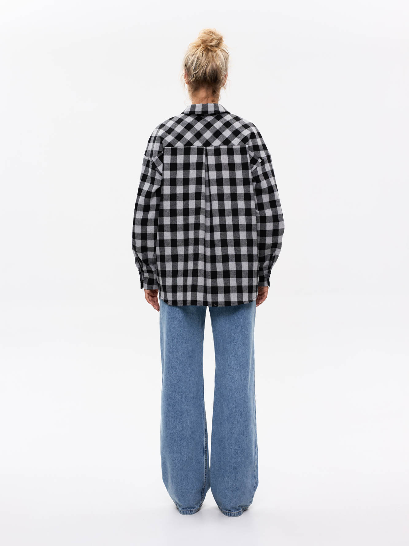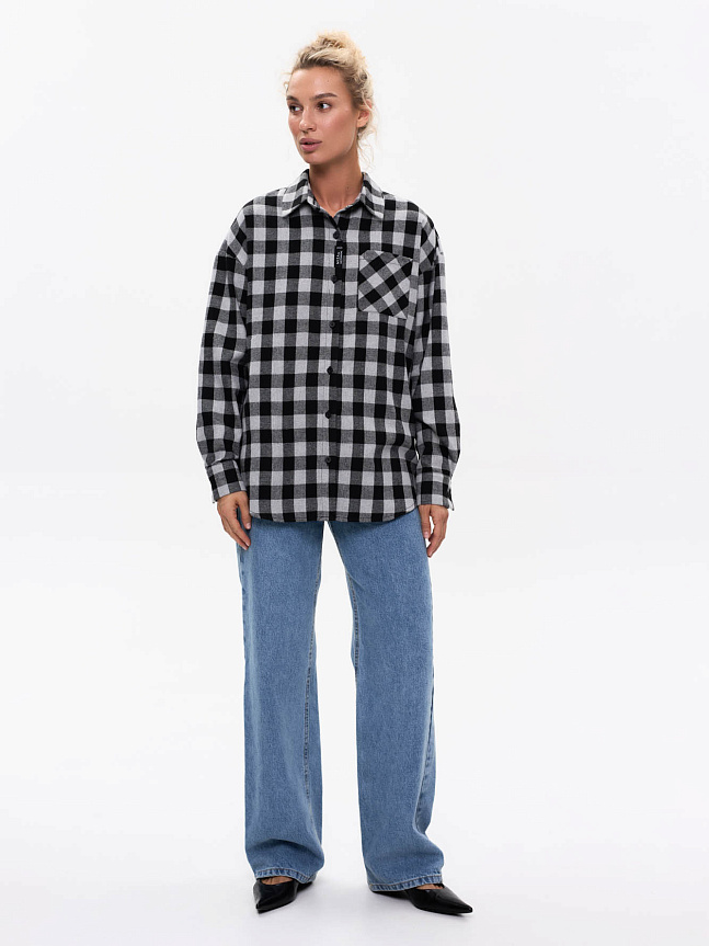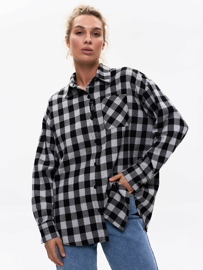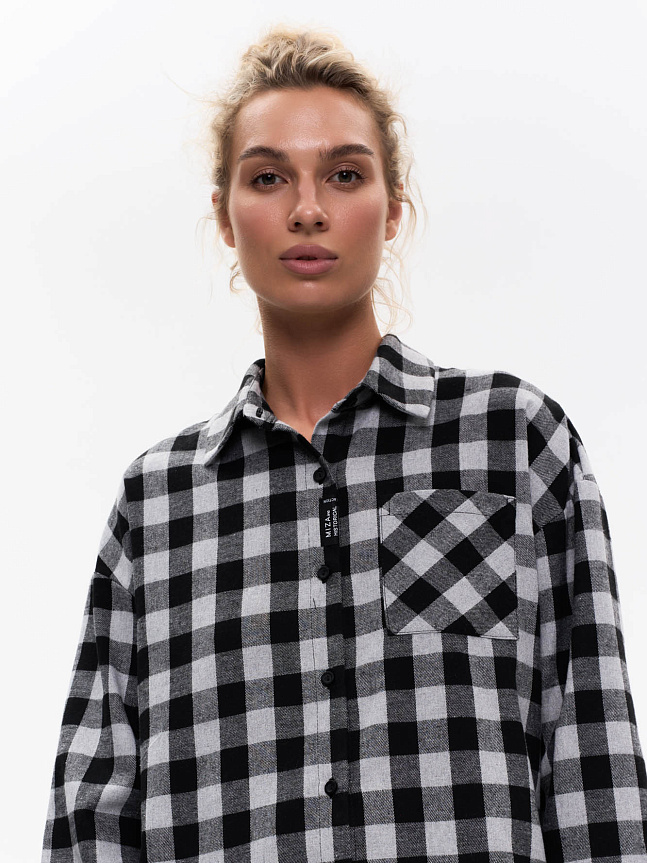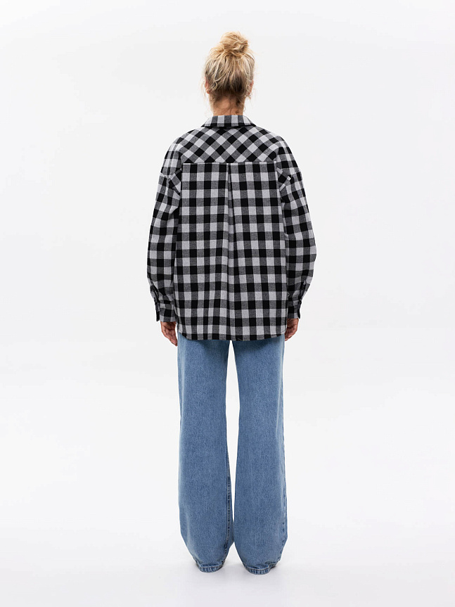 Рубашка прямого силуэта свободного кроя из ткани с легким утеплением.