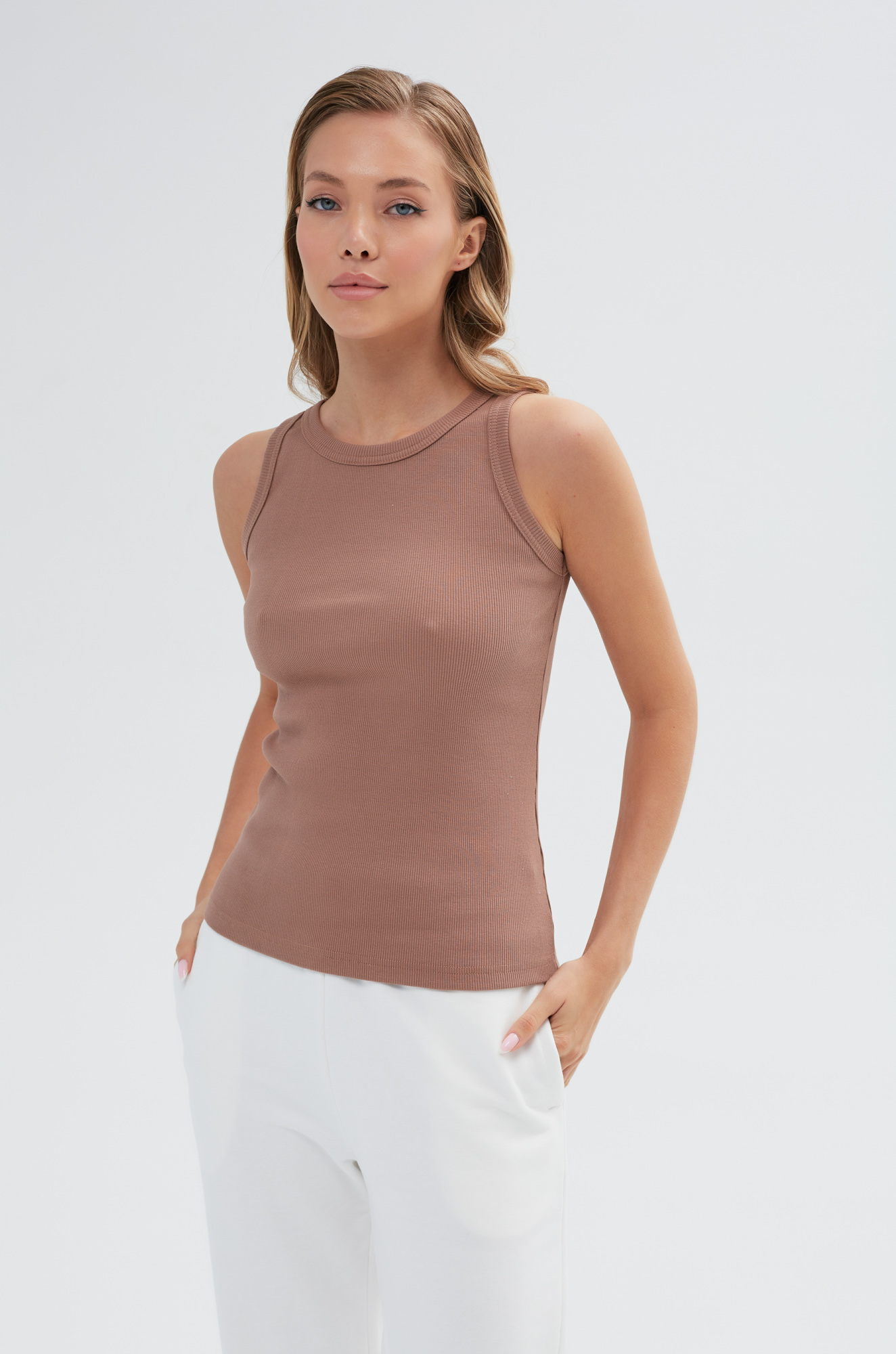 Базовая майка актуального кроя из трикотажа в рубчик.