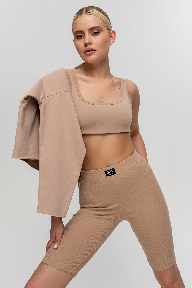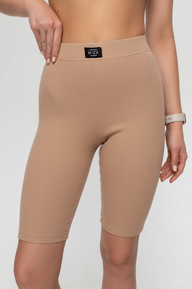 Велосипедки в рубчик базового кроя с нашивкой на переде.