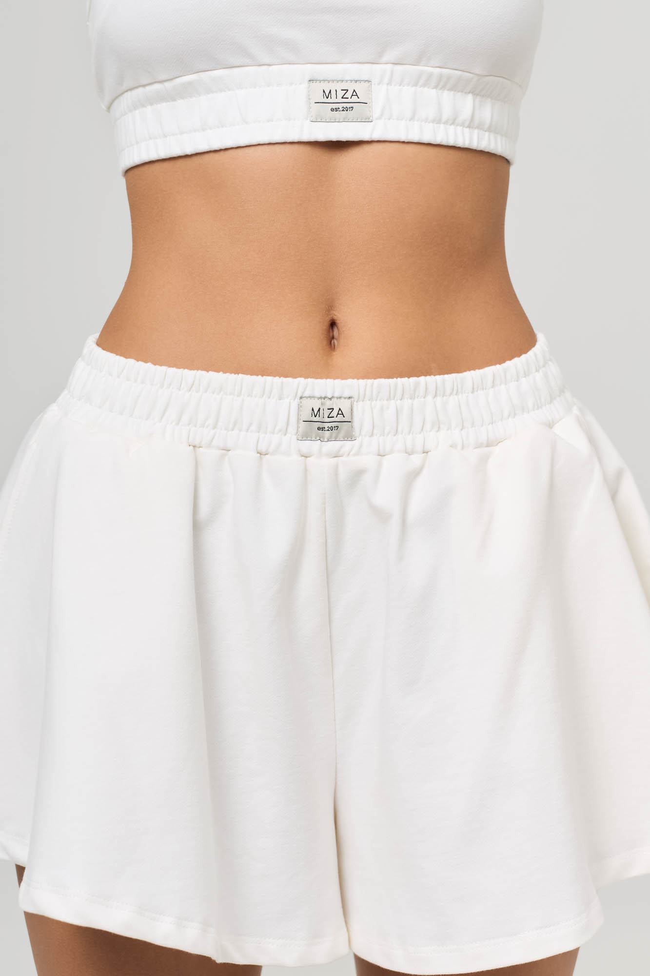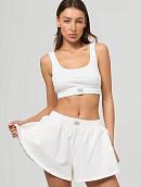 Состоит из бралетта на широких бретелях и шортиков свободного кроя с высокой линией посадки.