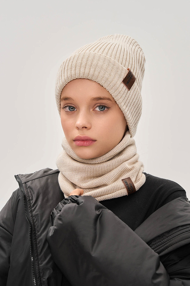 Вязаная шапка с хлопковым подкладом и с фирменной кожаной нашивкой.