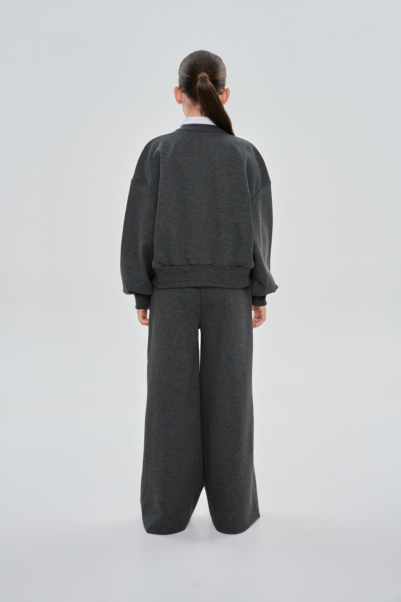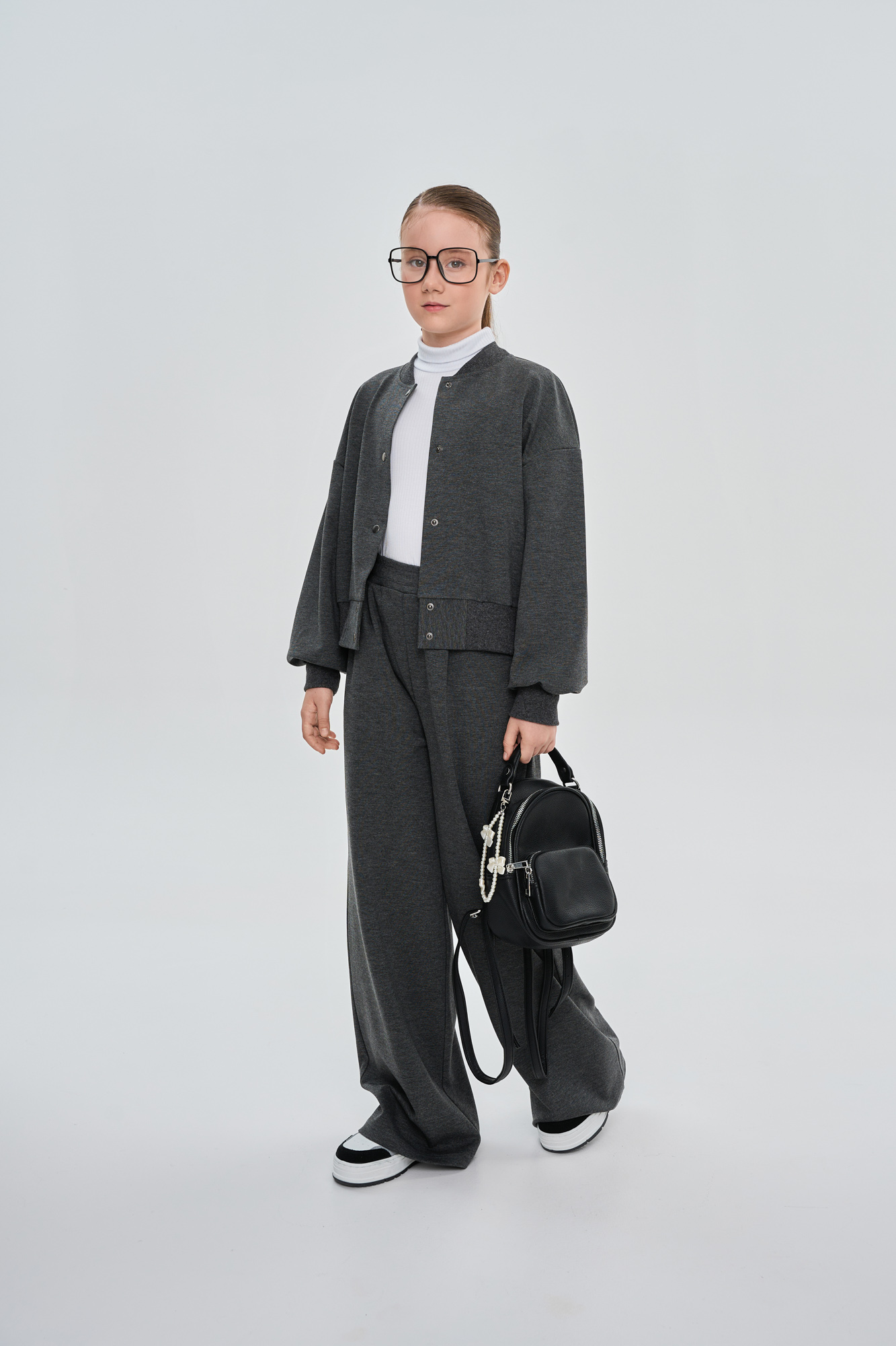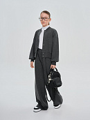 Брюки прямые, свободного кроя, с декоративными защипами на переде.
