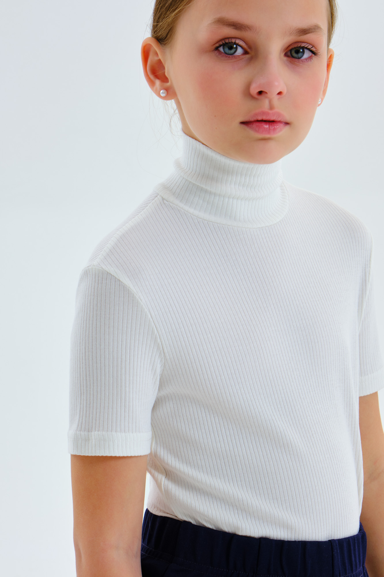 Базовая водолазка с коротким рукавом из мягкого эластичного трикотажа в рубчик.