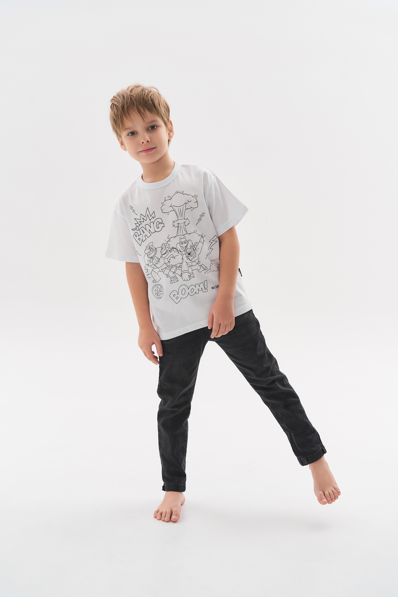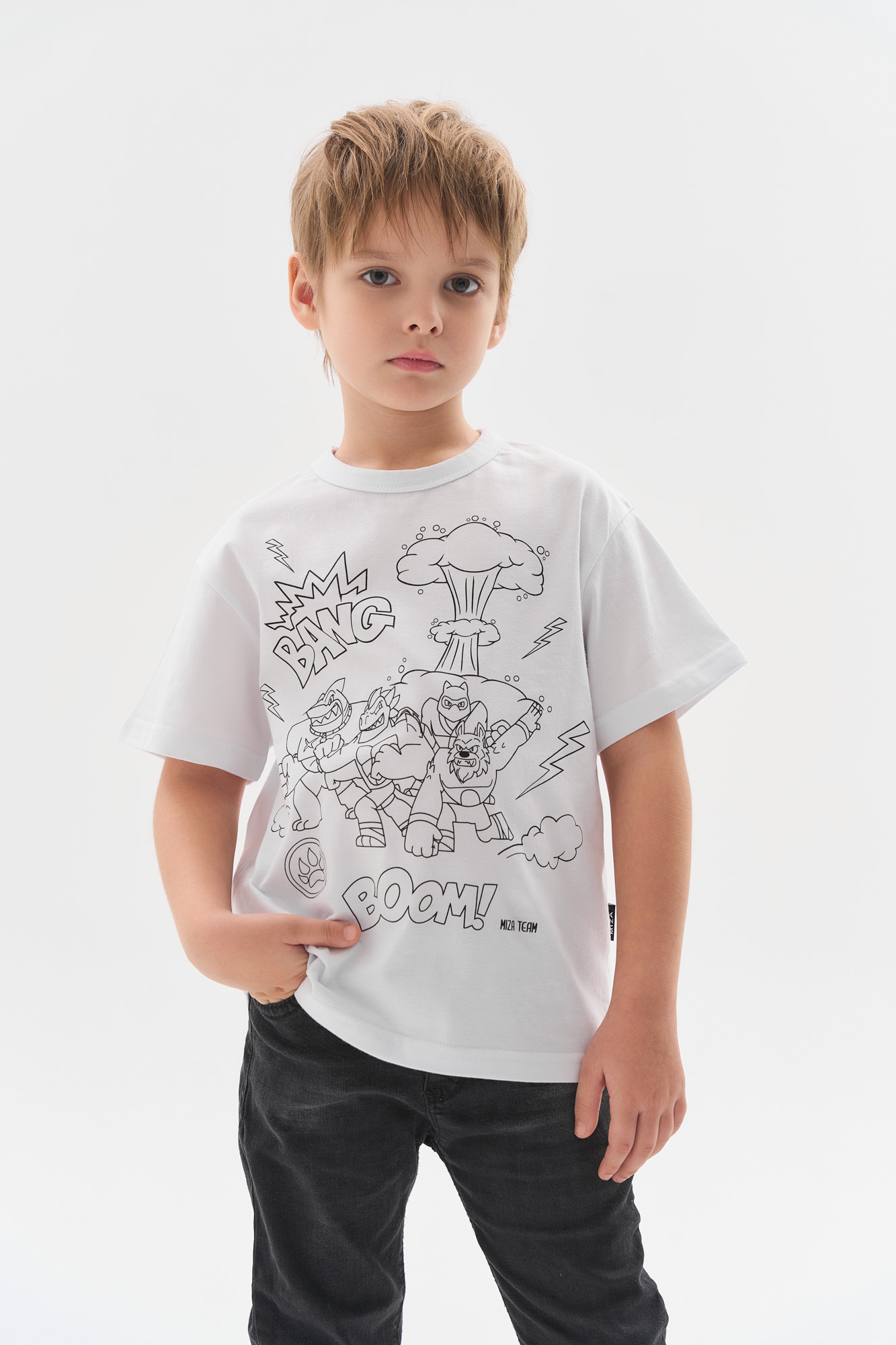 После того, как ребенок раскрасит изображение и внесет свои авторские штрихи, футболку рекомендуем проутюжить и в дальнейшем стирать при температуре 30 градусов.
