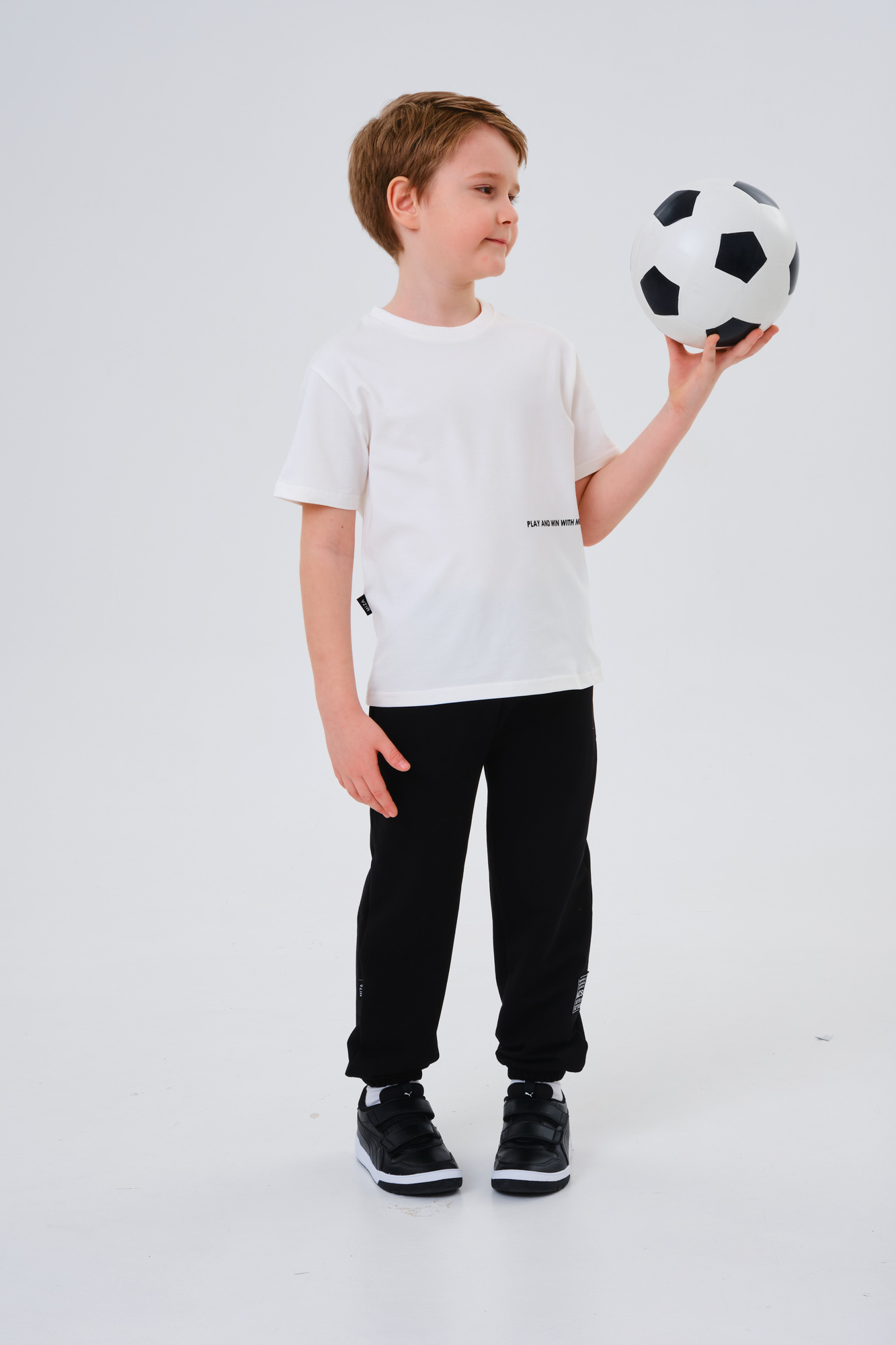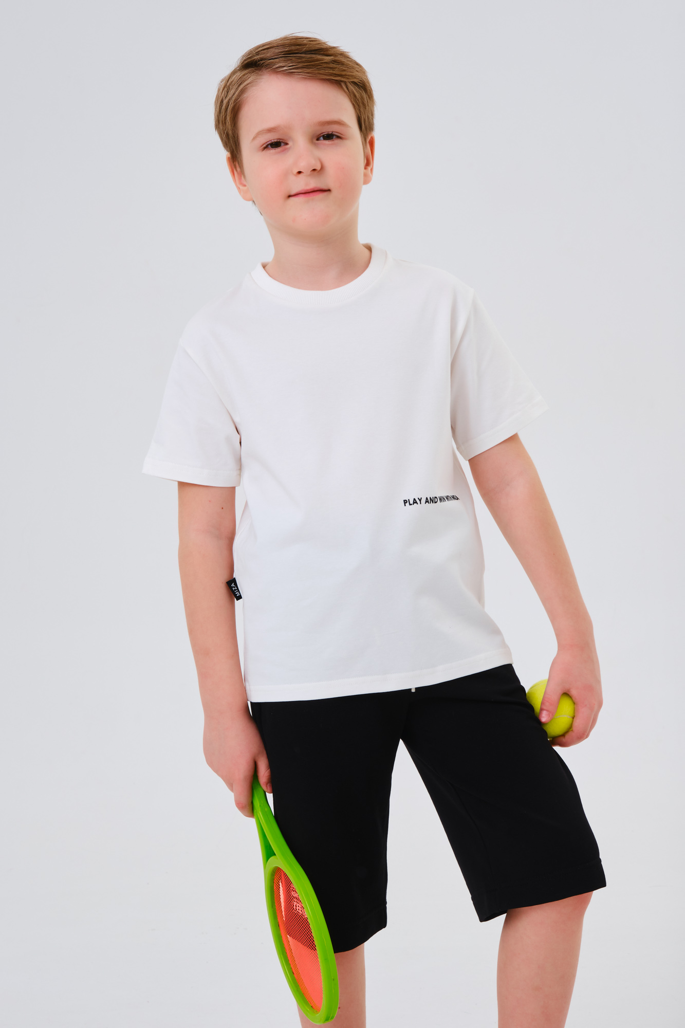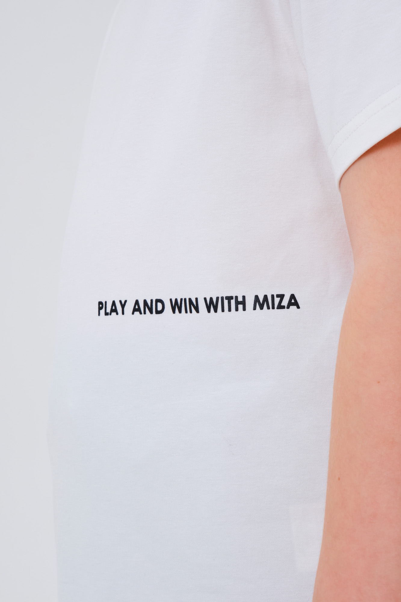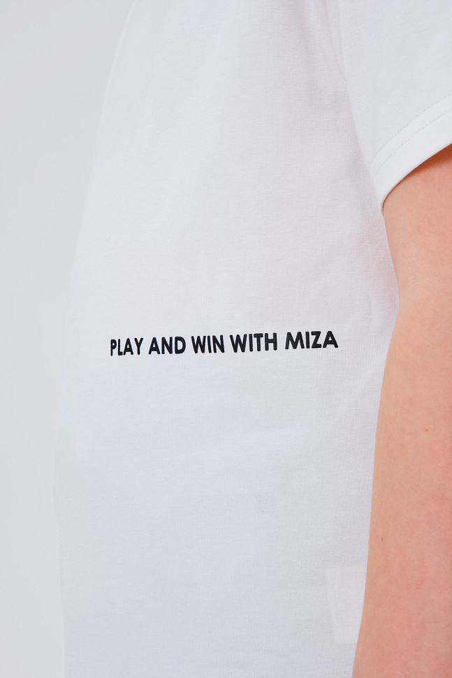 Оформлена лаконичным текстовым принтом.