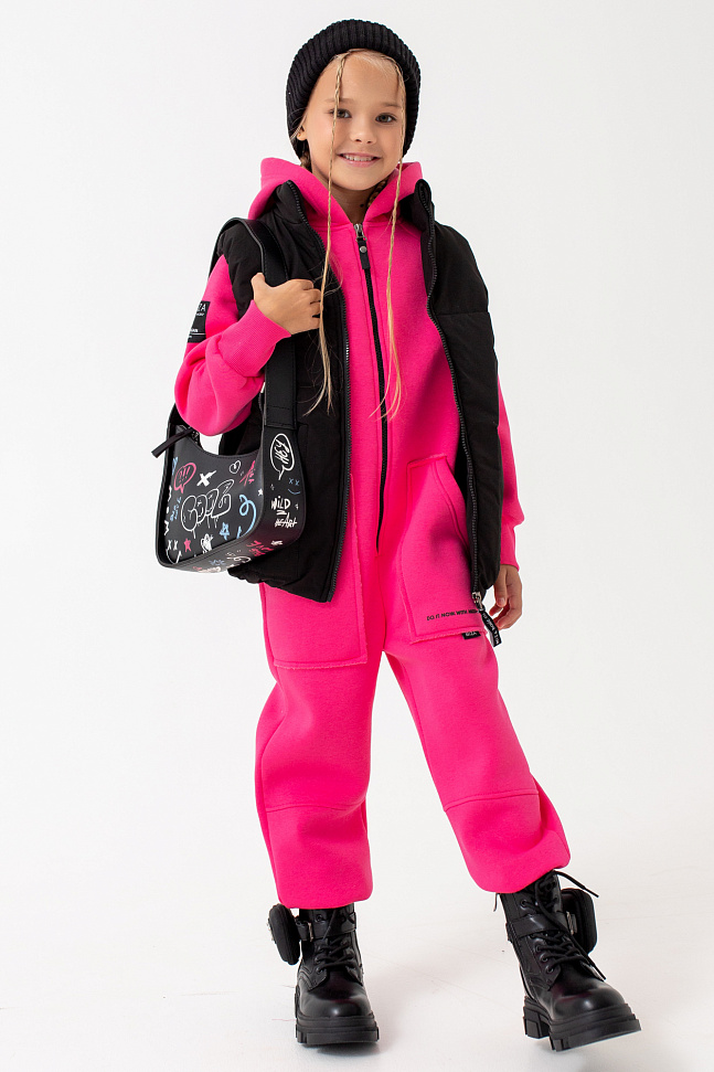 Низ рукава и брюк на широкой манжете из эластичного трикотажа в рубчик, что позволяет регулировать длину изделия.