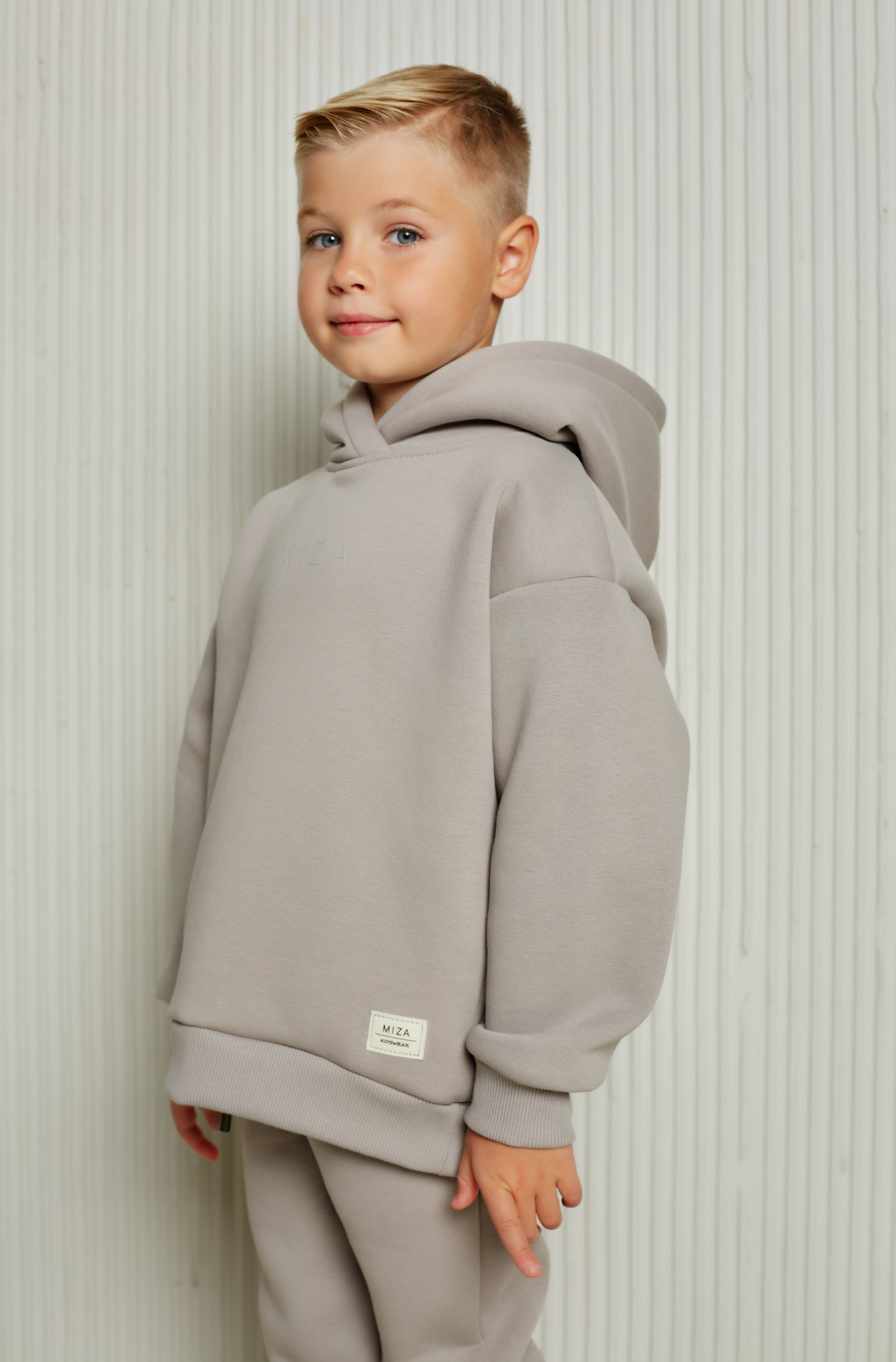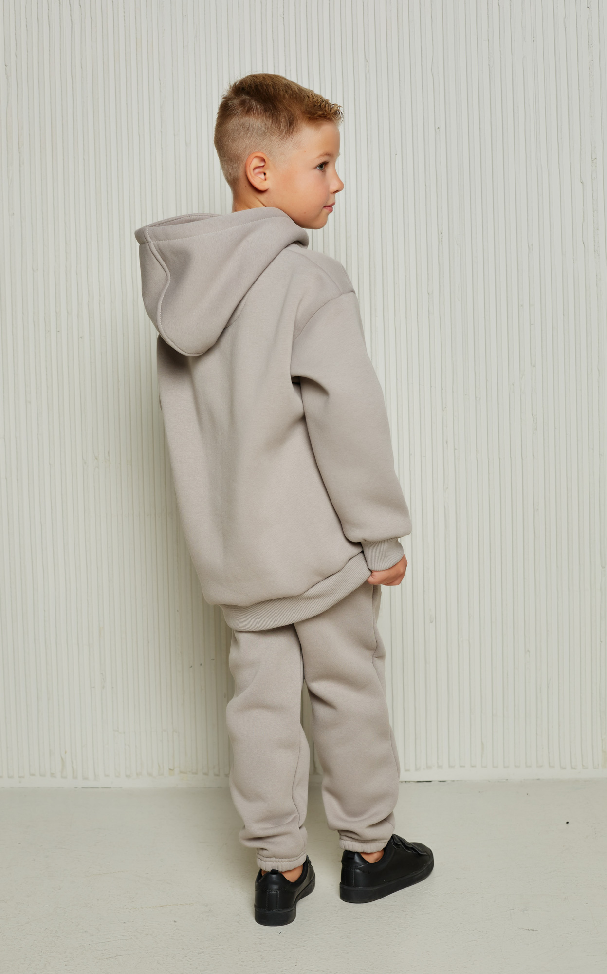 Состоит из объёмного худи с двойным капюшоном и боковыми карманами и брюк-джогеров.