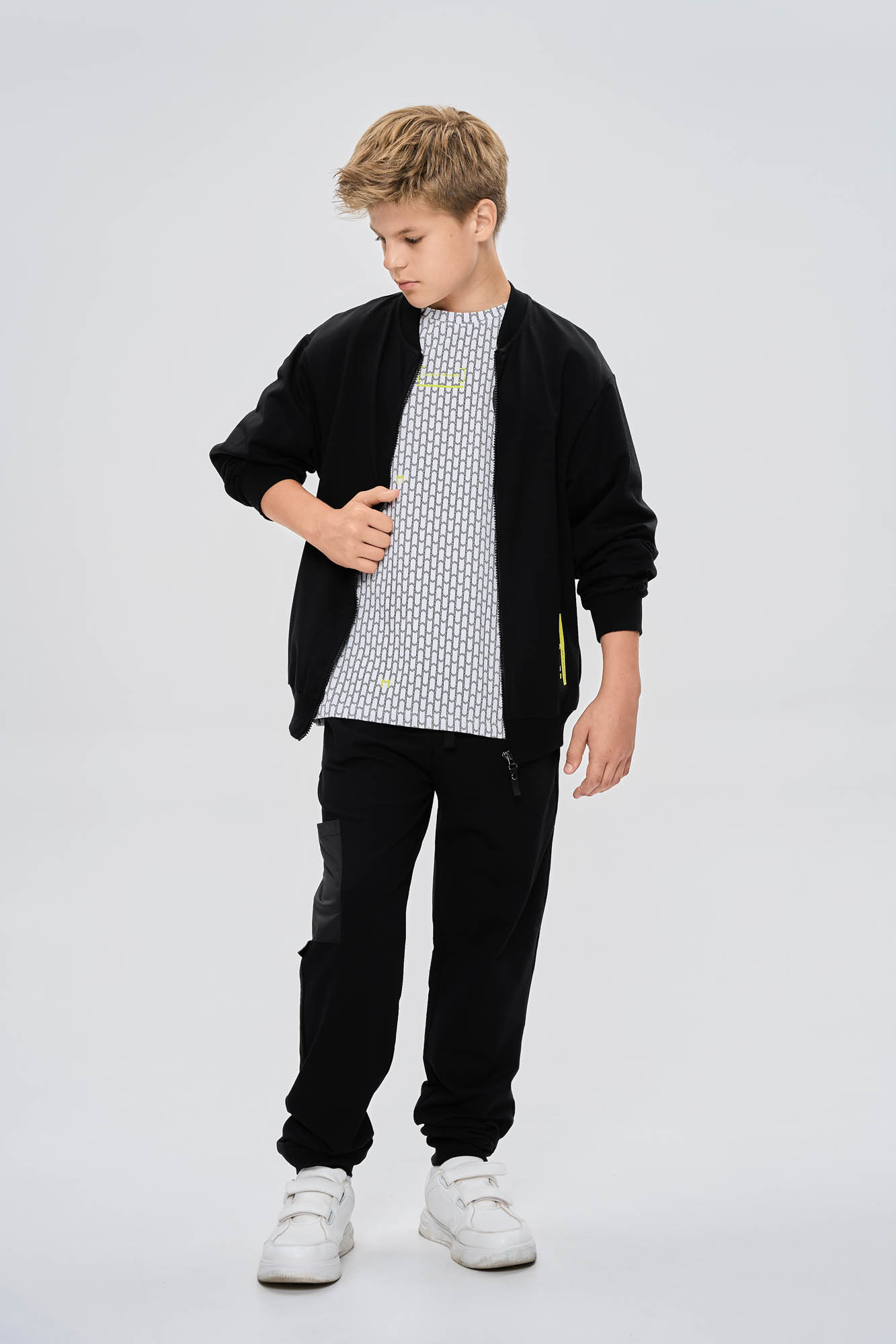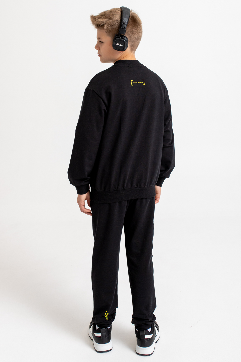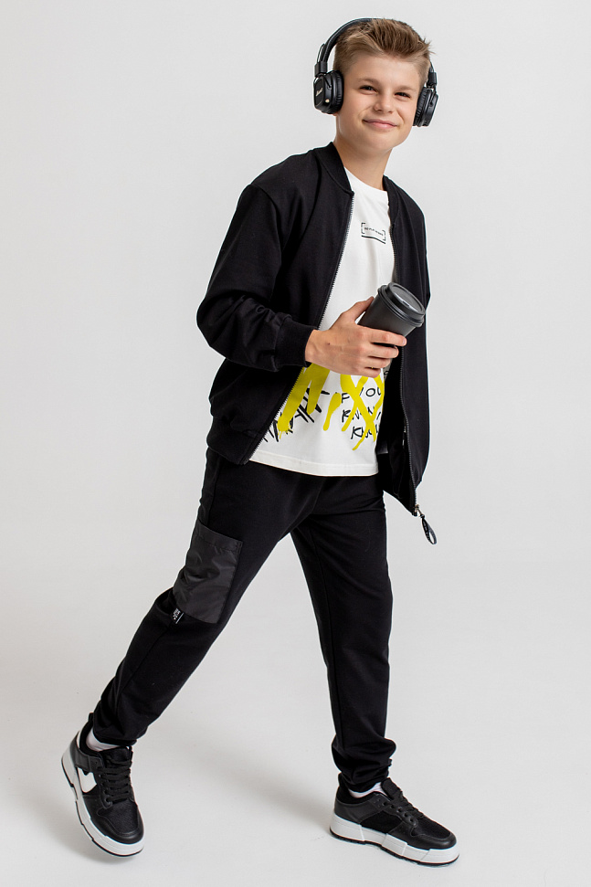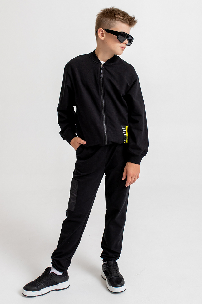 Костюм состоит из бомбера с застежкой-молнией и брюк-джоггеров.