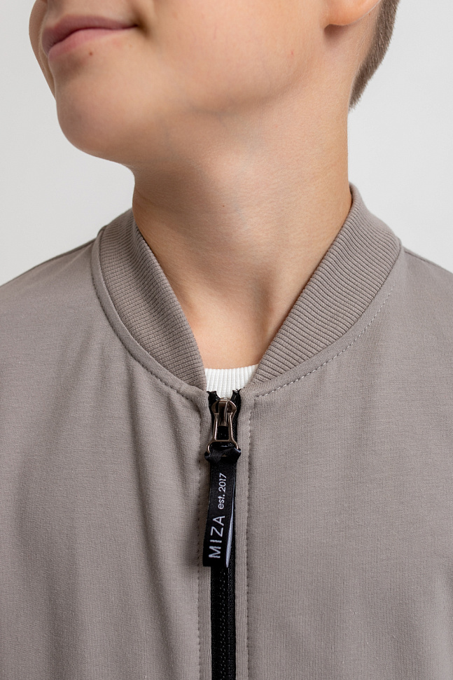 Костюм состоит из бомбера с застежкой-молнией и брюк-джоггеров.
