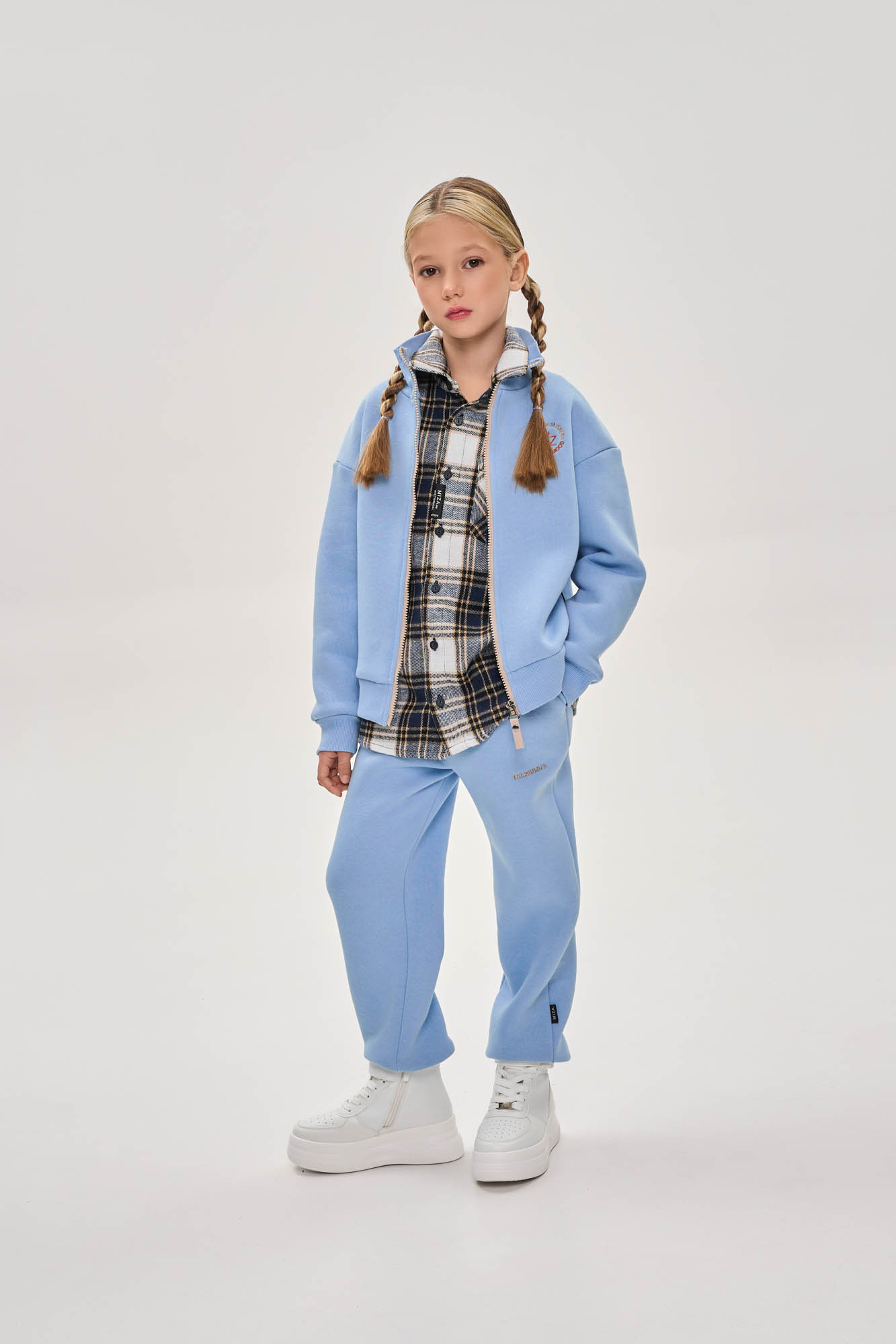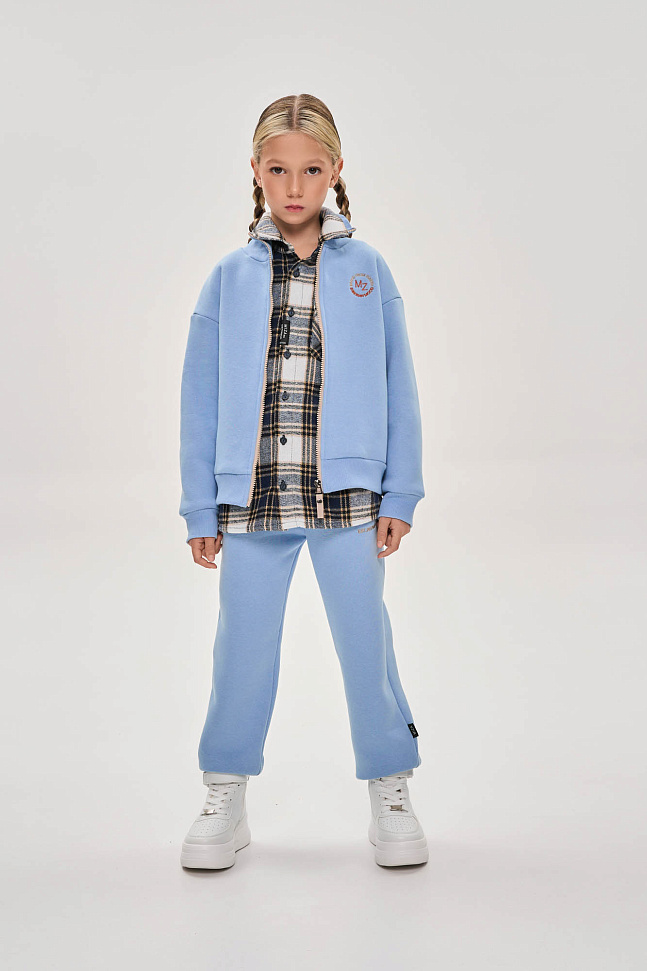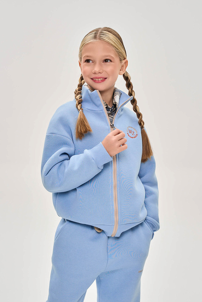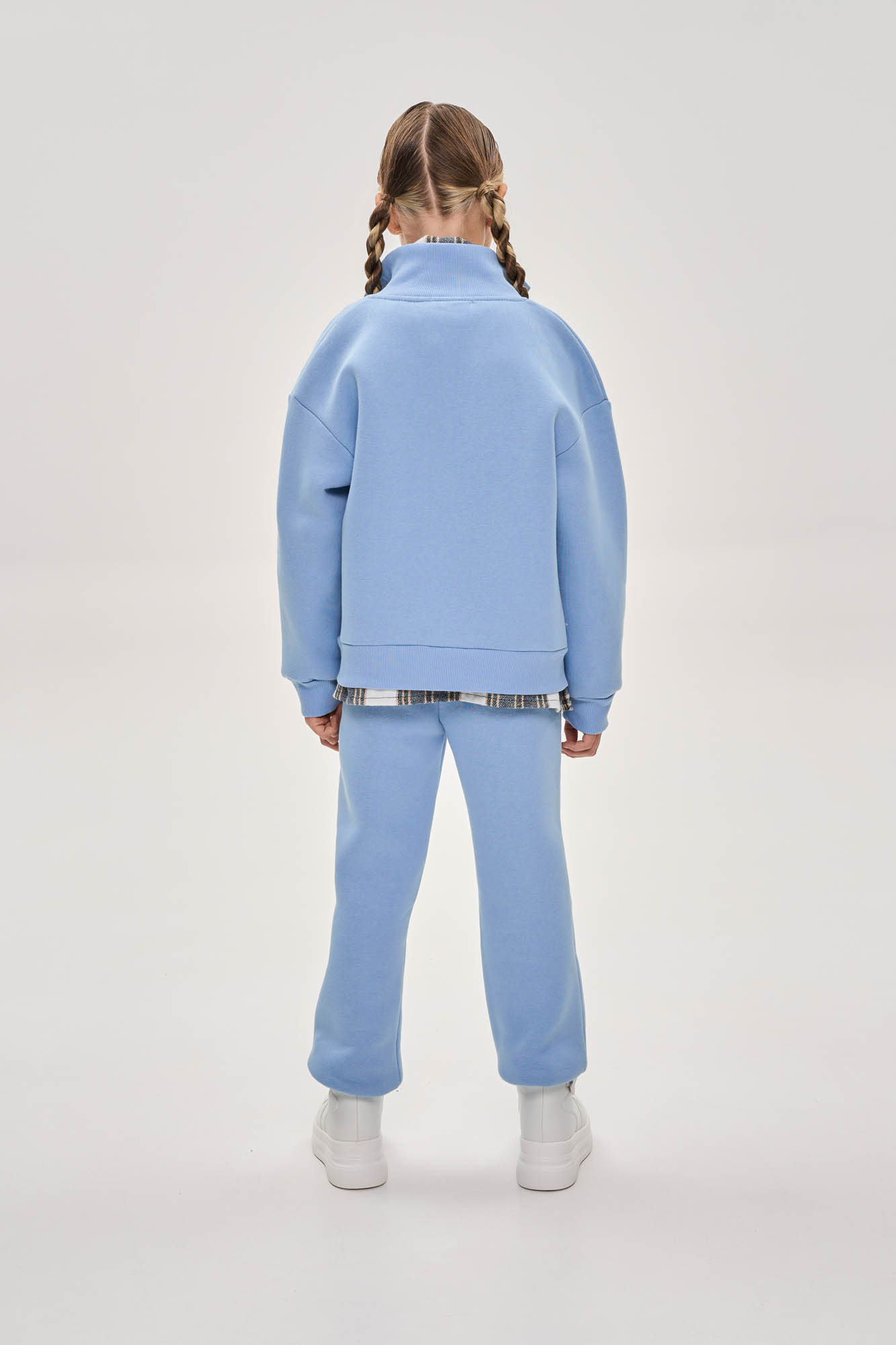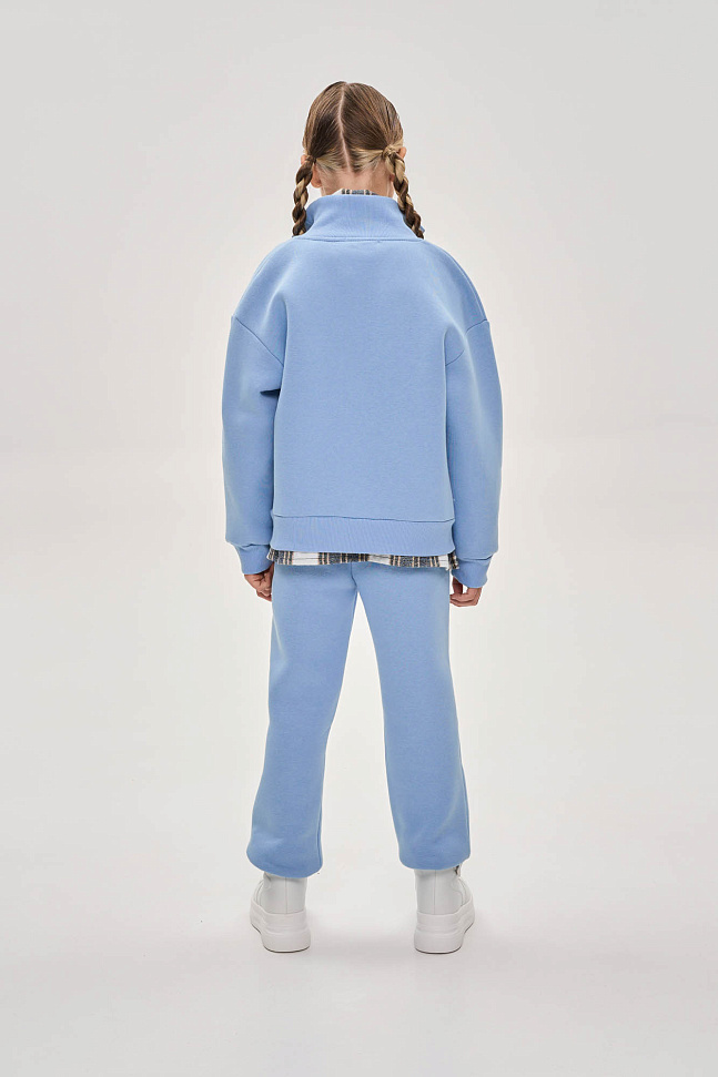 Состоит из свитшота с воротником-стойкой на молнии и брюк-джоггеров.