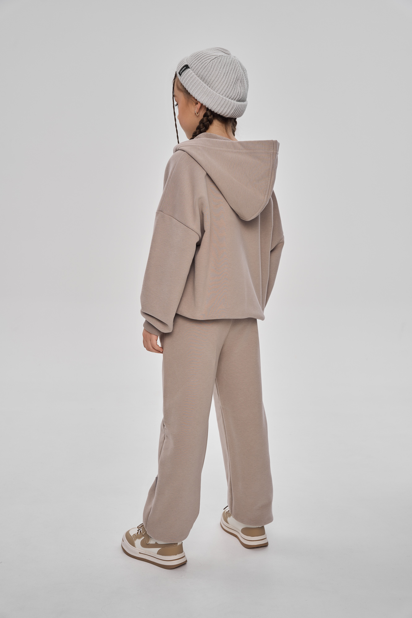 Костюм объемного кроя из премиального футера с петельной изнанкой.