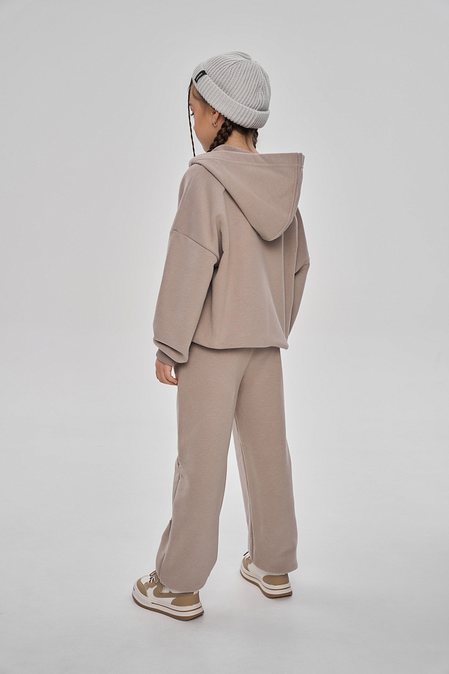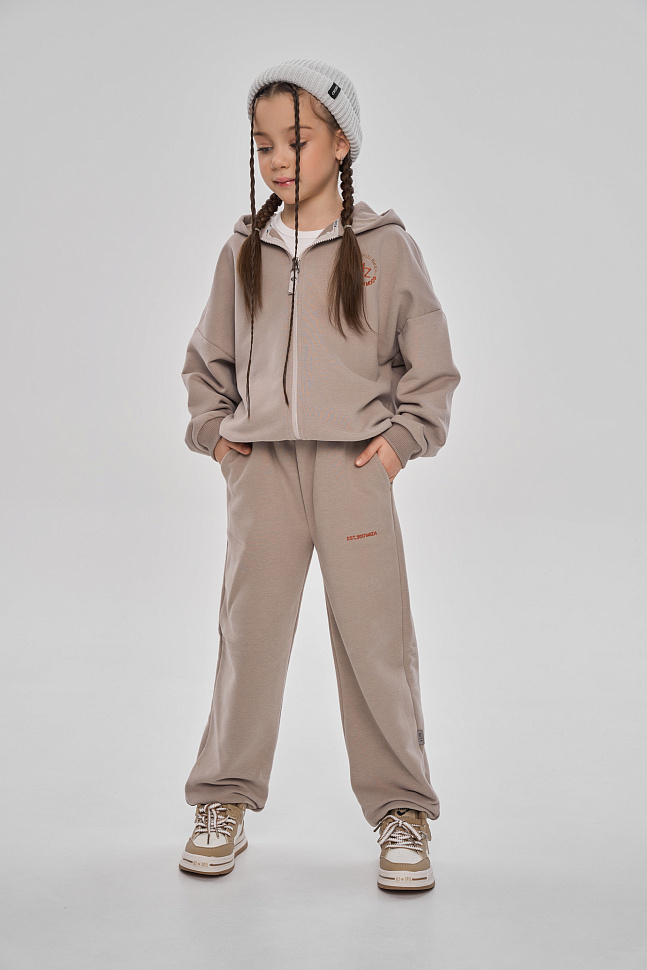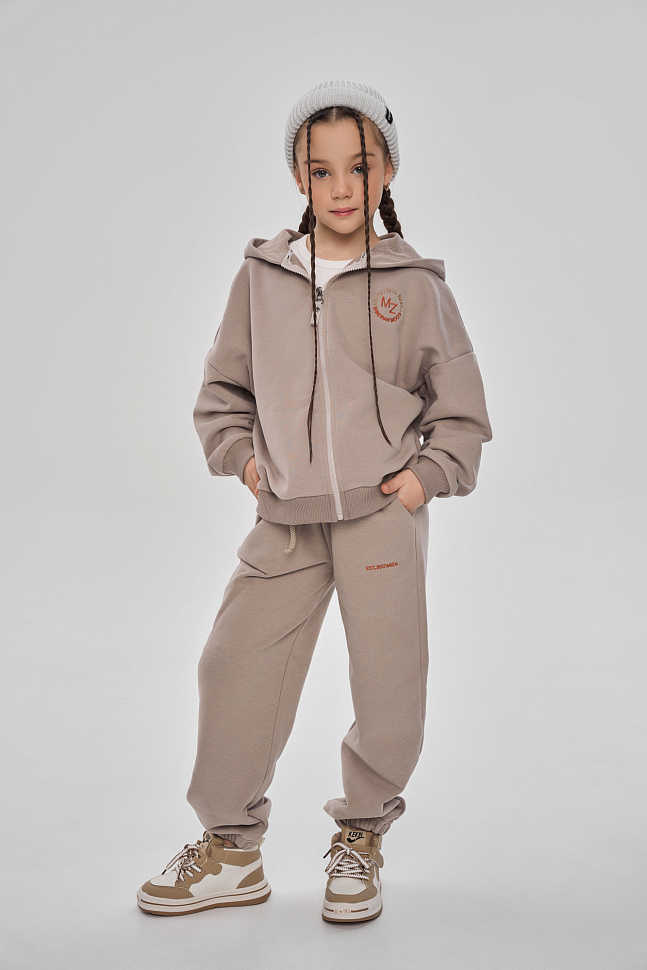 Состоит из худи на молнии и брюк джоггеров.