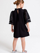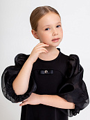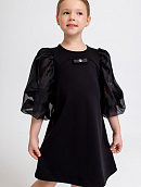 Лаконичное платье из мягкого гладкого трикотажа с объёмными рукавами из полупрозрачного капрона.