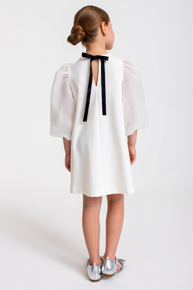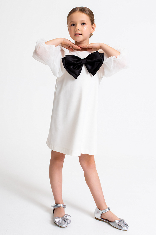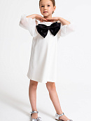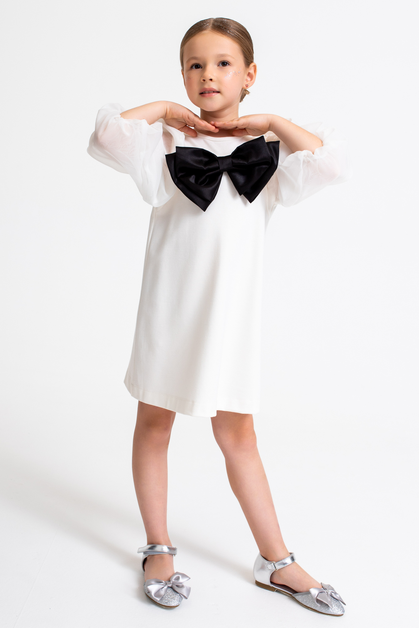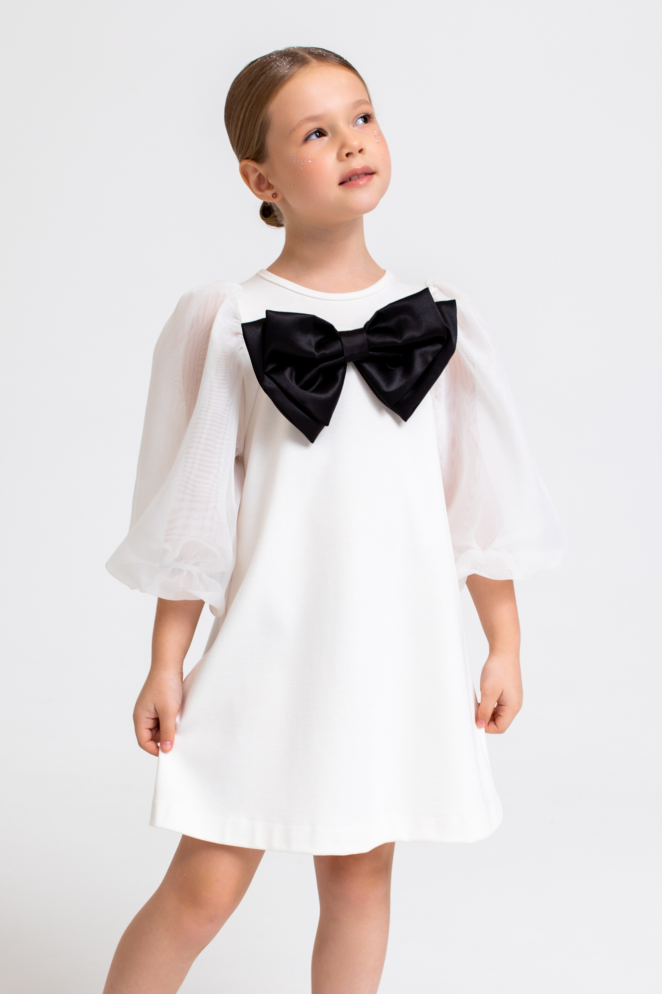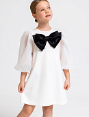 Спереди декоративный съемный бант, который можно заменить на маленький бант в тон платья (в комплекте).