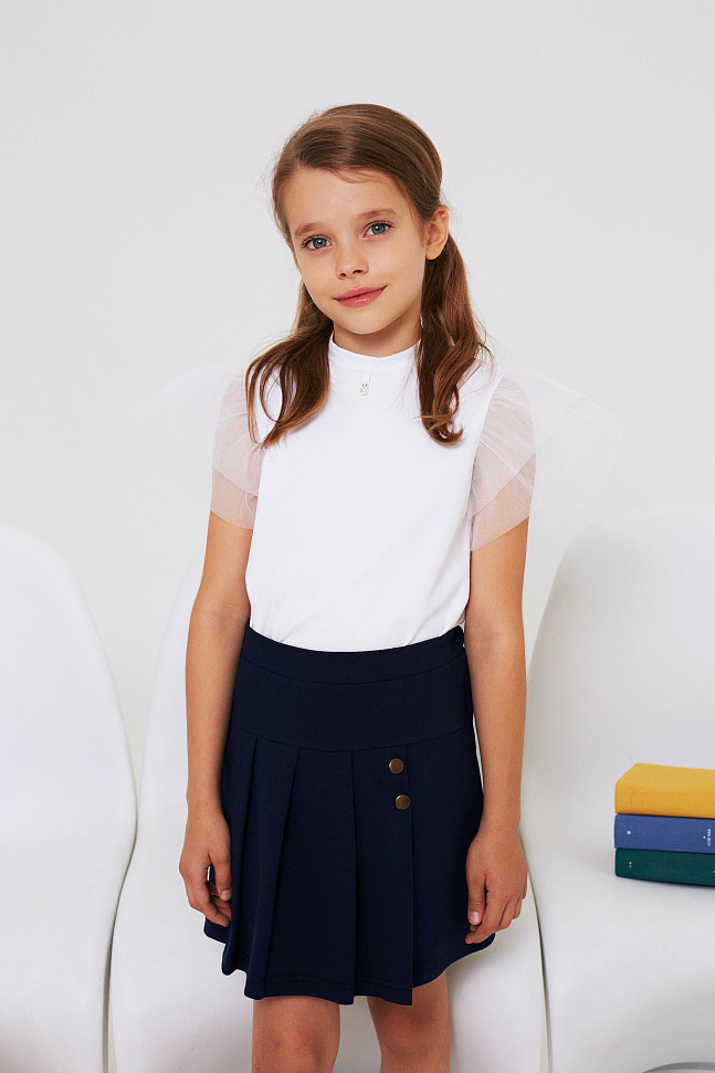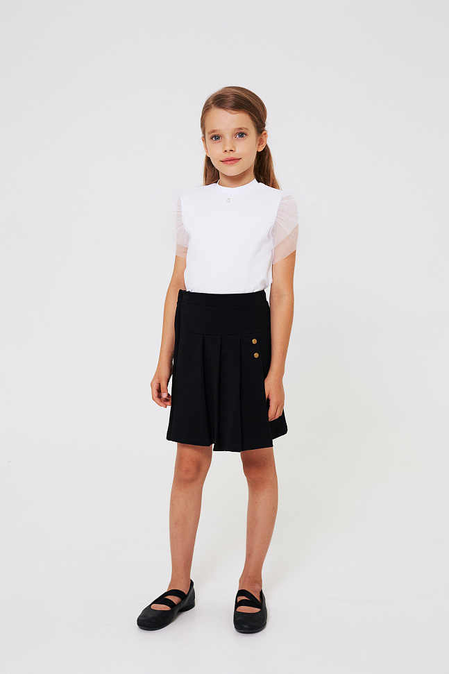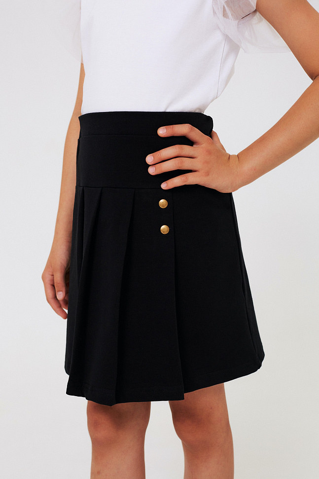 Юбка с декоративными складками, оформленными металлическими отделочными кнопками.