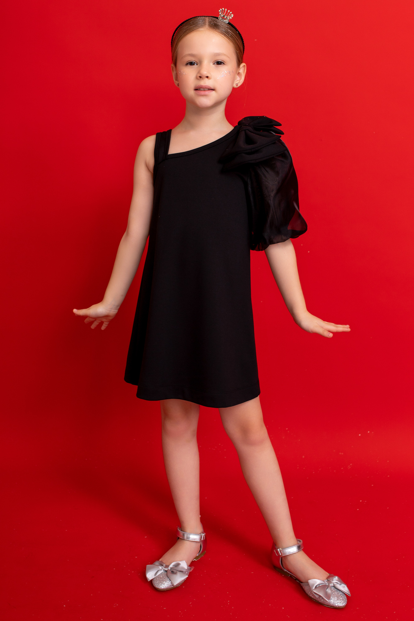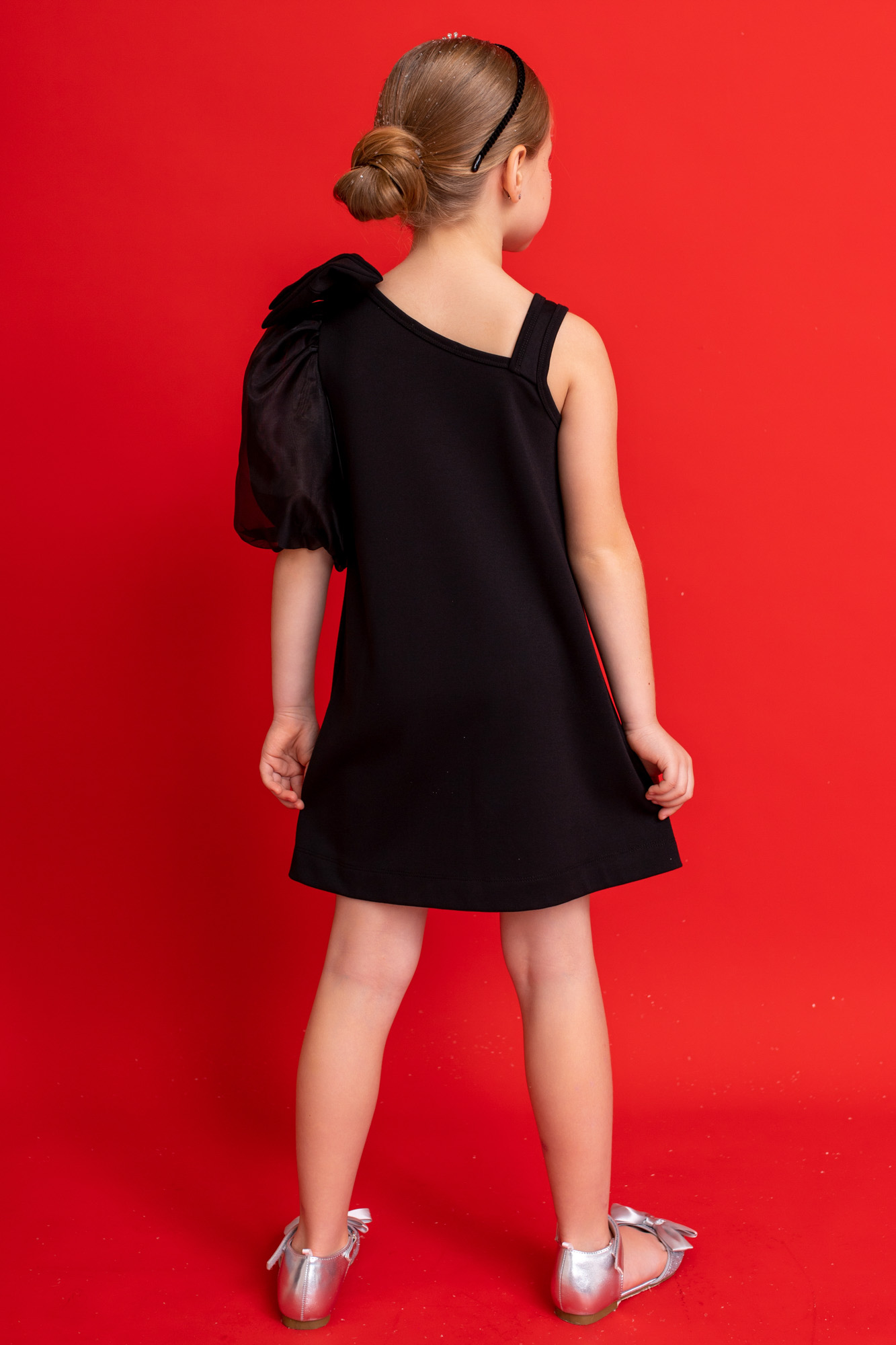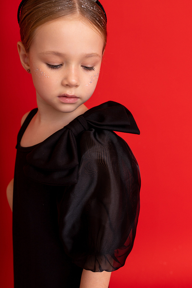 Элегантное асимметричное платье с объемным бантом из