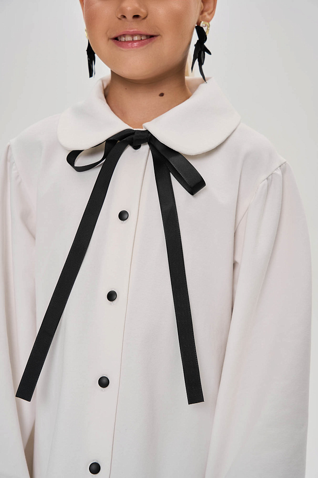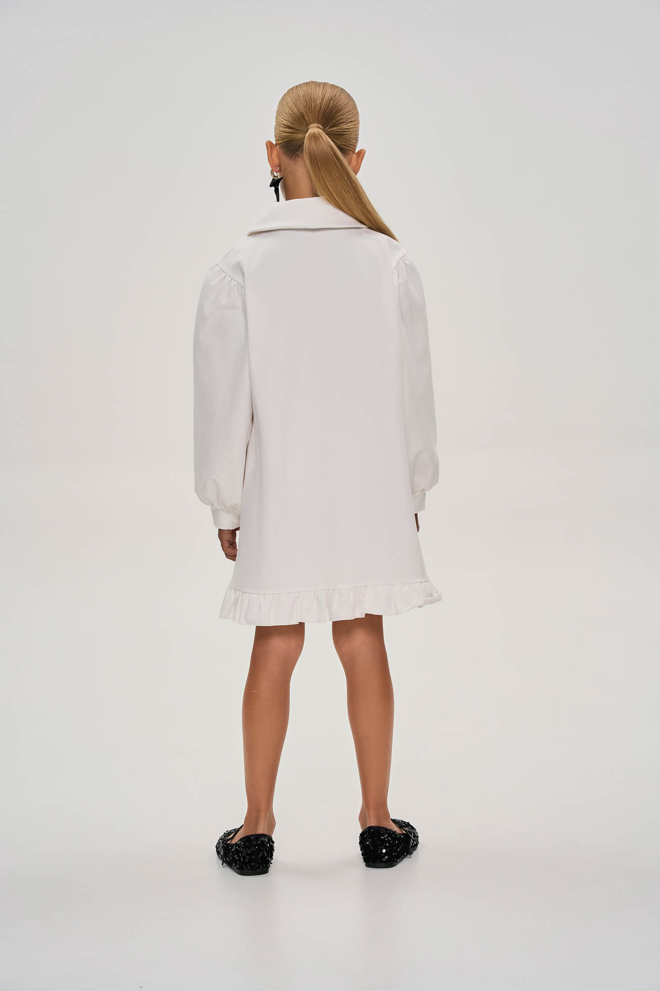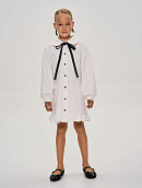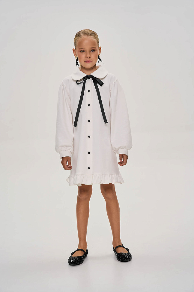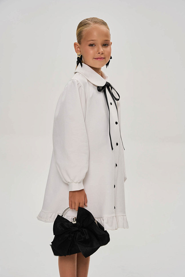 Платье свободного кроя со спущенной линией плеча и отложным воротником.