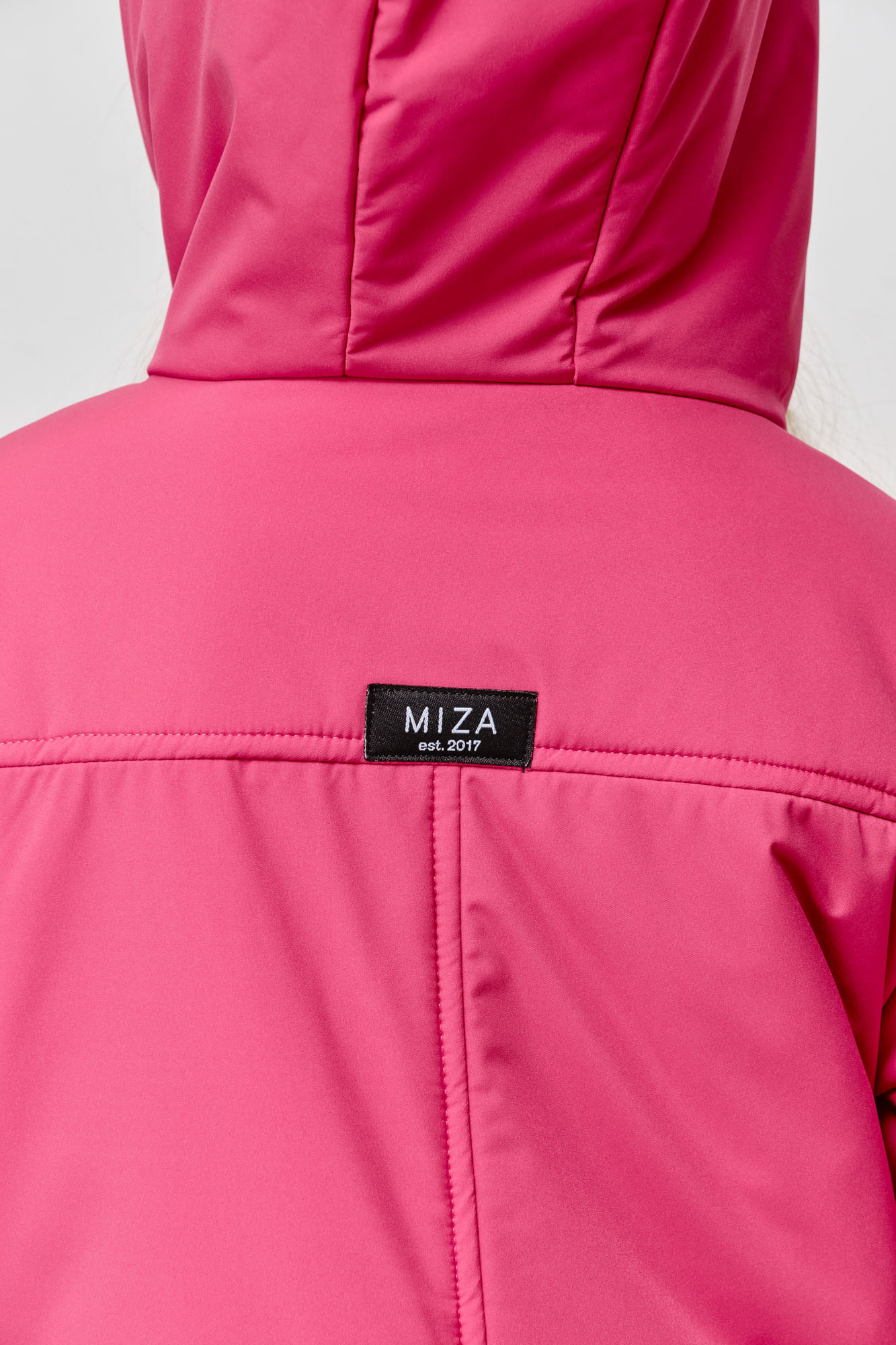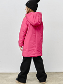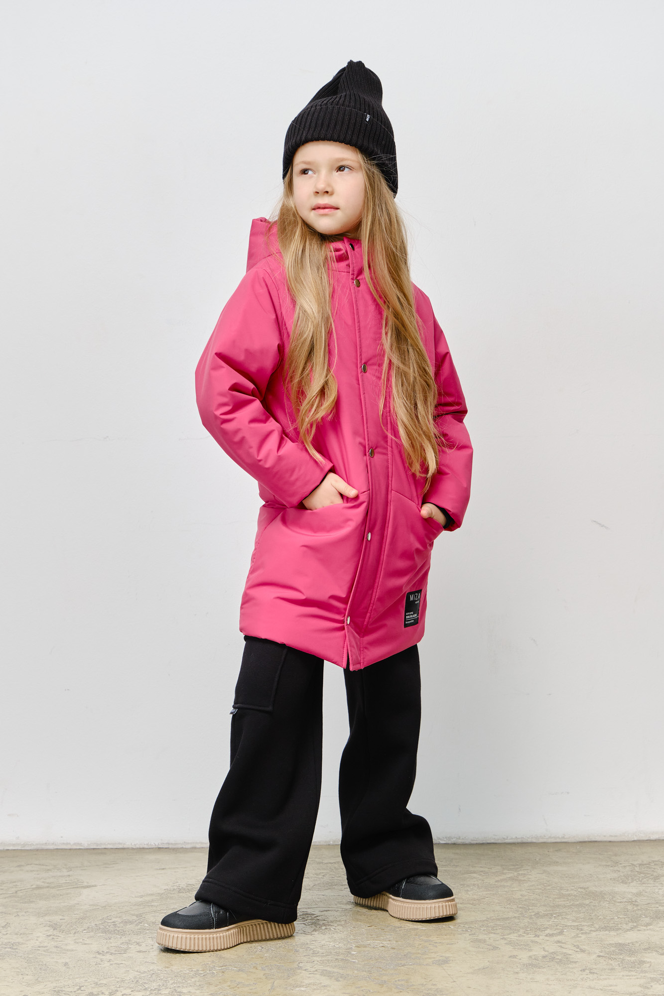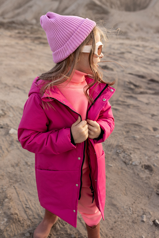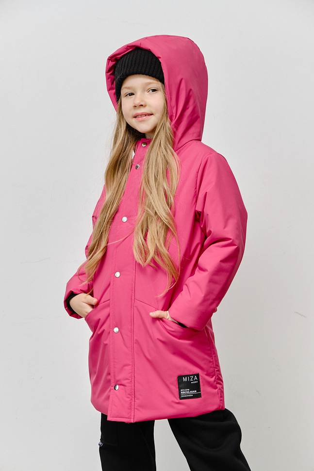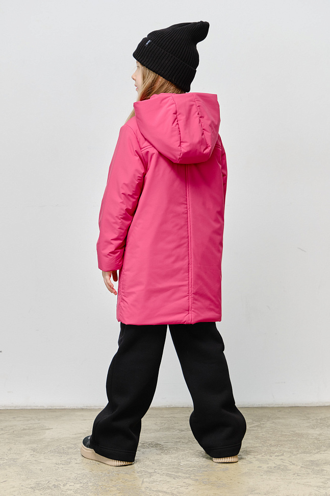 Удлиненная куртка прямого кроя с капюшоном и карманами.