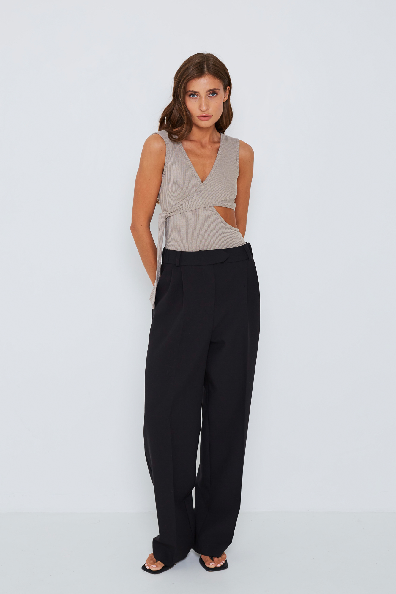 Асимметричный боди без рукавов.