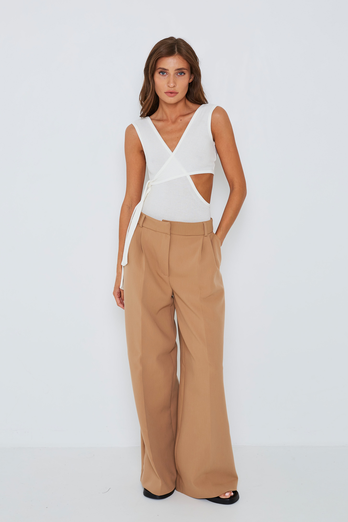 Отлично сочетается с топом-бандо.
