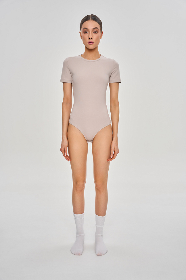 Боди с коротким рукавом и лаконичным вырезом горловины.
