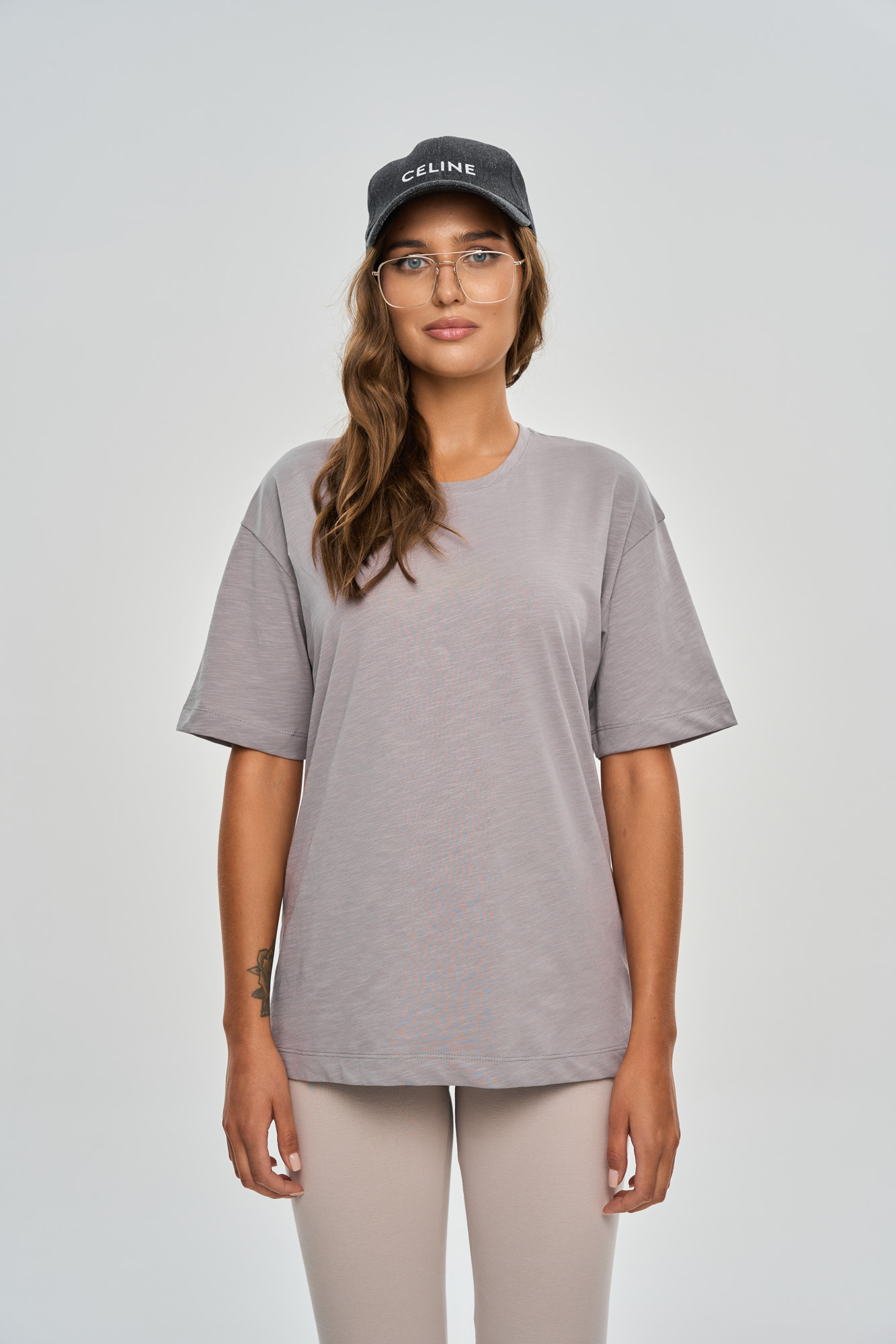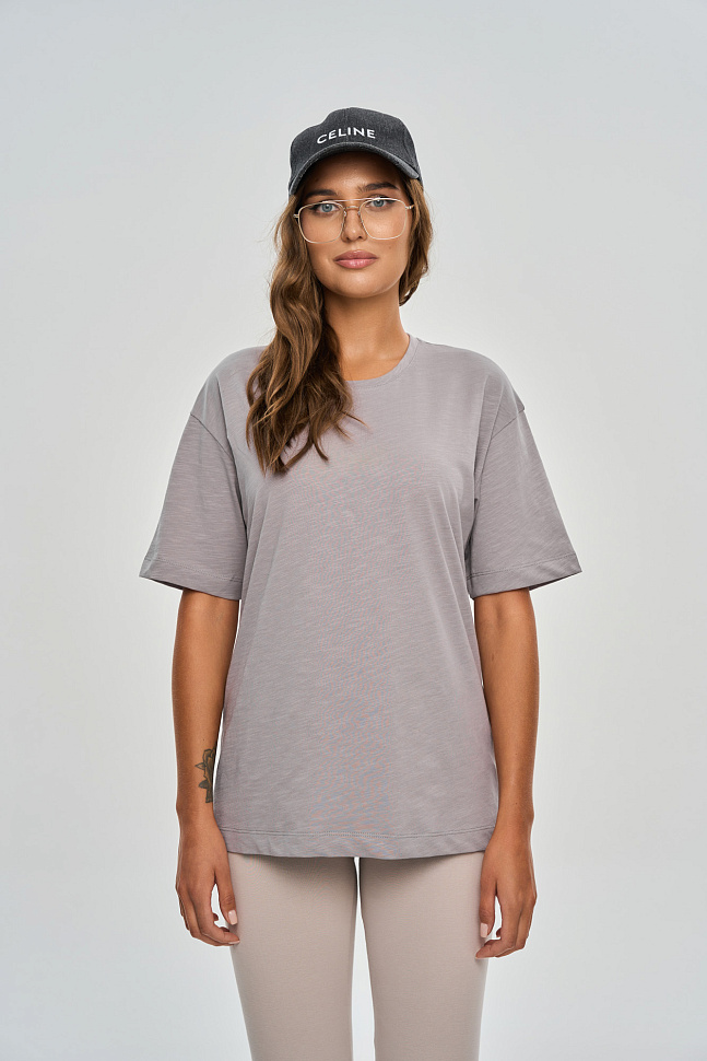 Футболка базового кроя, выполнена из хлопкового трикотажа с эффектом неоднородной вязки.