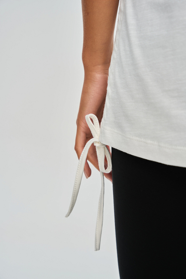 Выполнена из хлопкового трикотажа с эффектом неоднородной вязки.