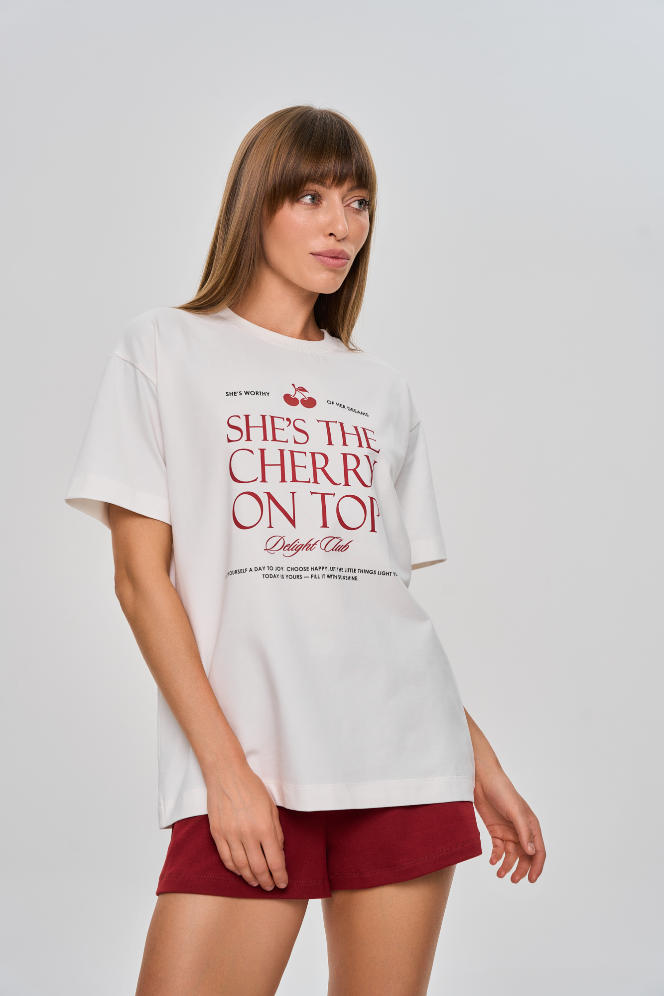 Футболка свободного кроя, выполнена из хлопкового трикотажа, содержащего эластан.