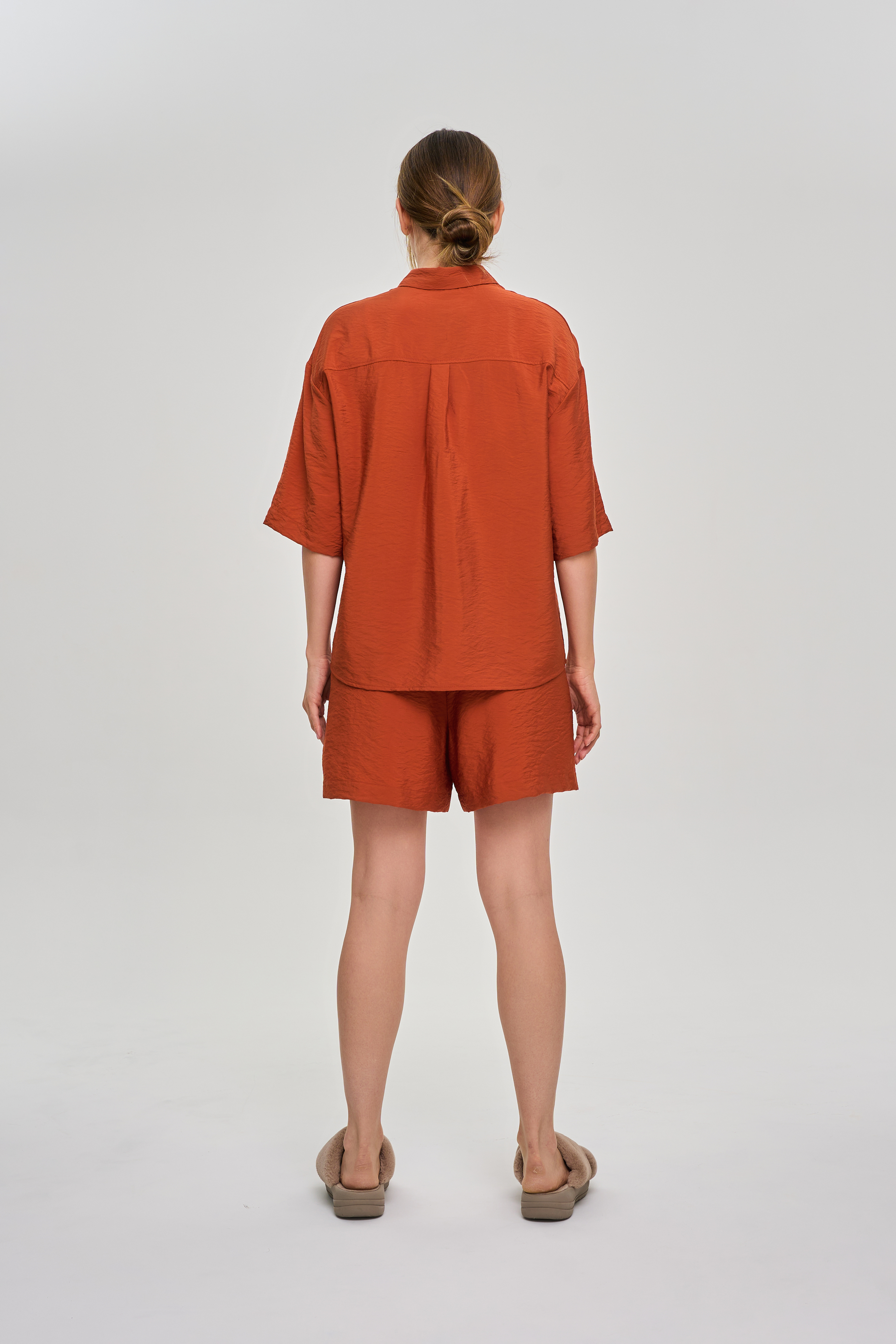 Состоит из объёмной рубашки и свободных шорт с карманами.