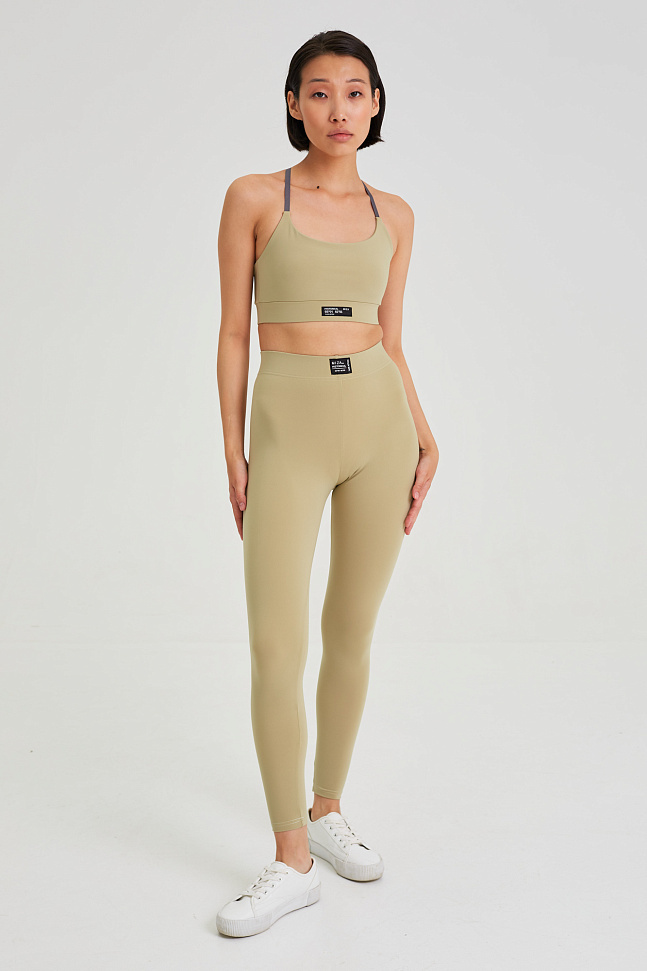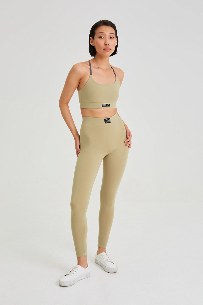 Спортивные легинсы базового кроя на широком эластичном поясе, оформленном брендированной нашивкой.