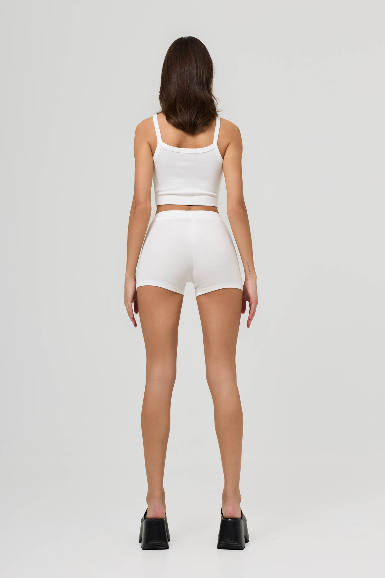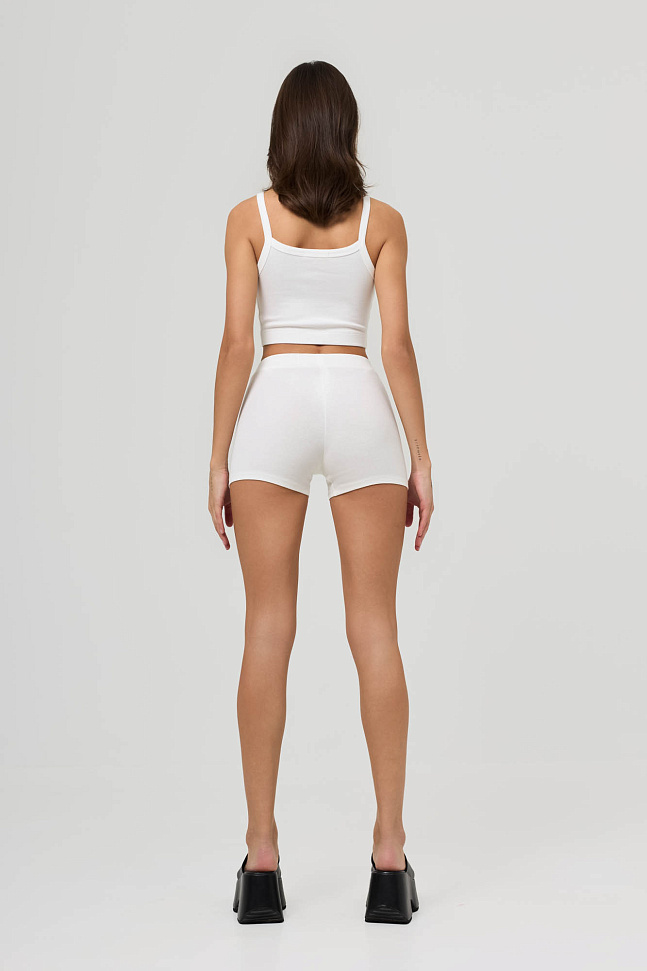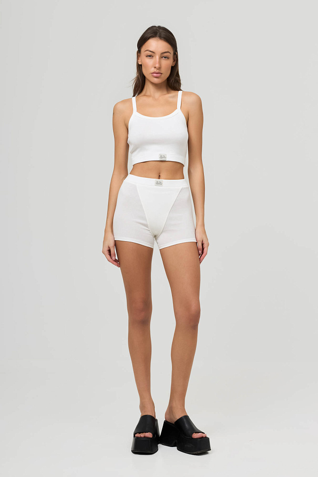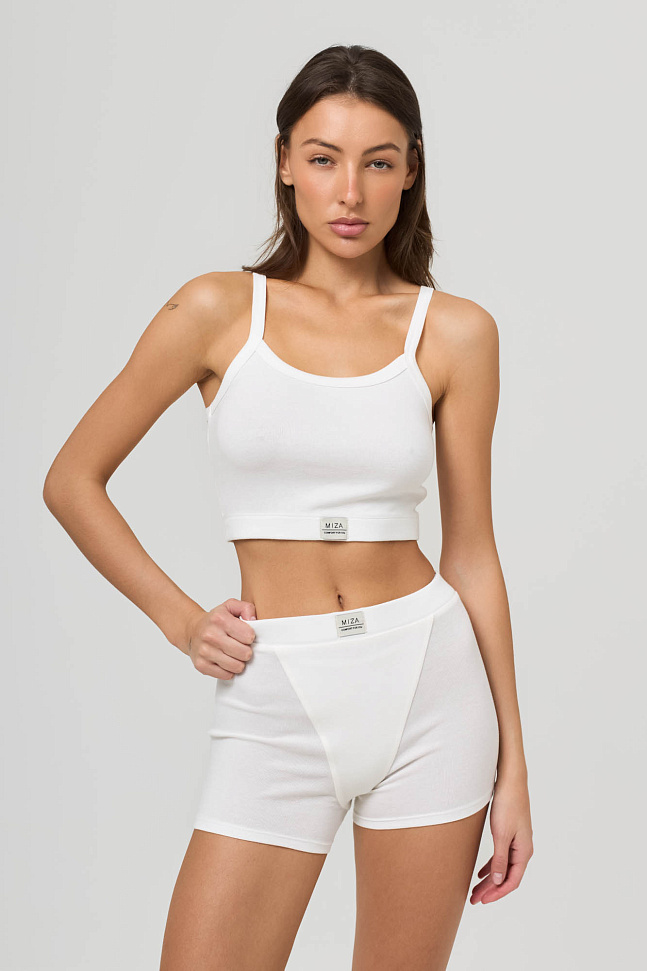 Состоит из топа на бретелях и укороченных велосипедок с высокой посадкой.
