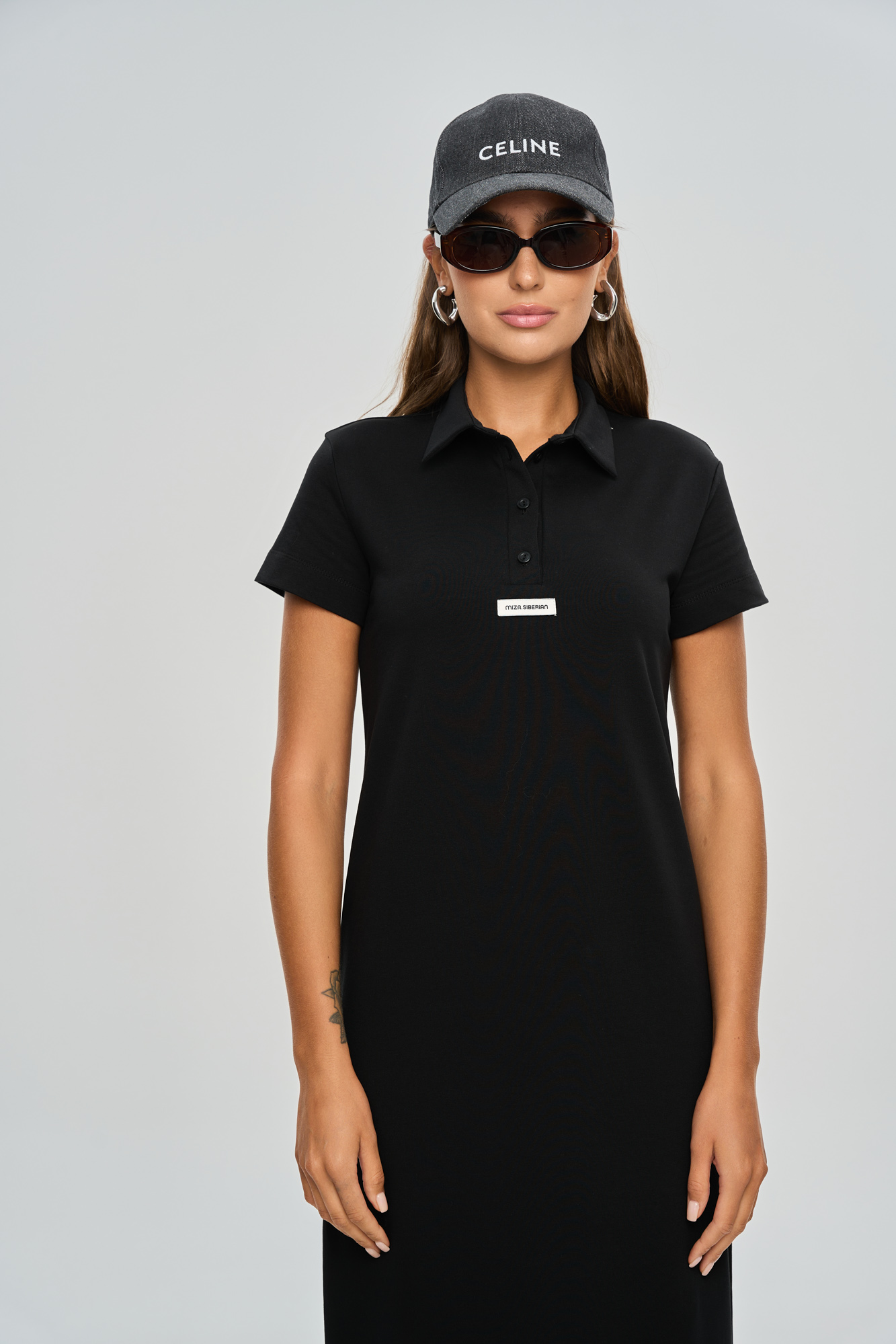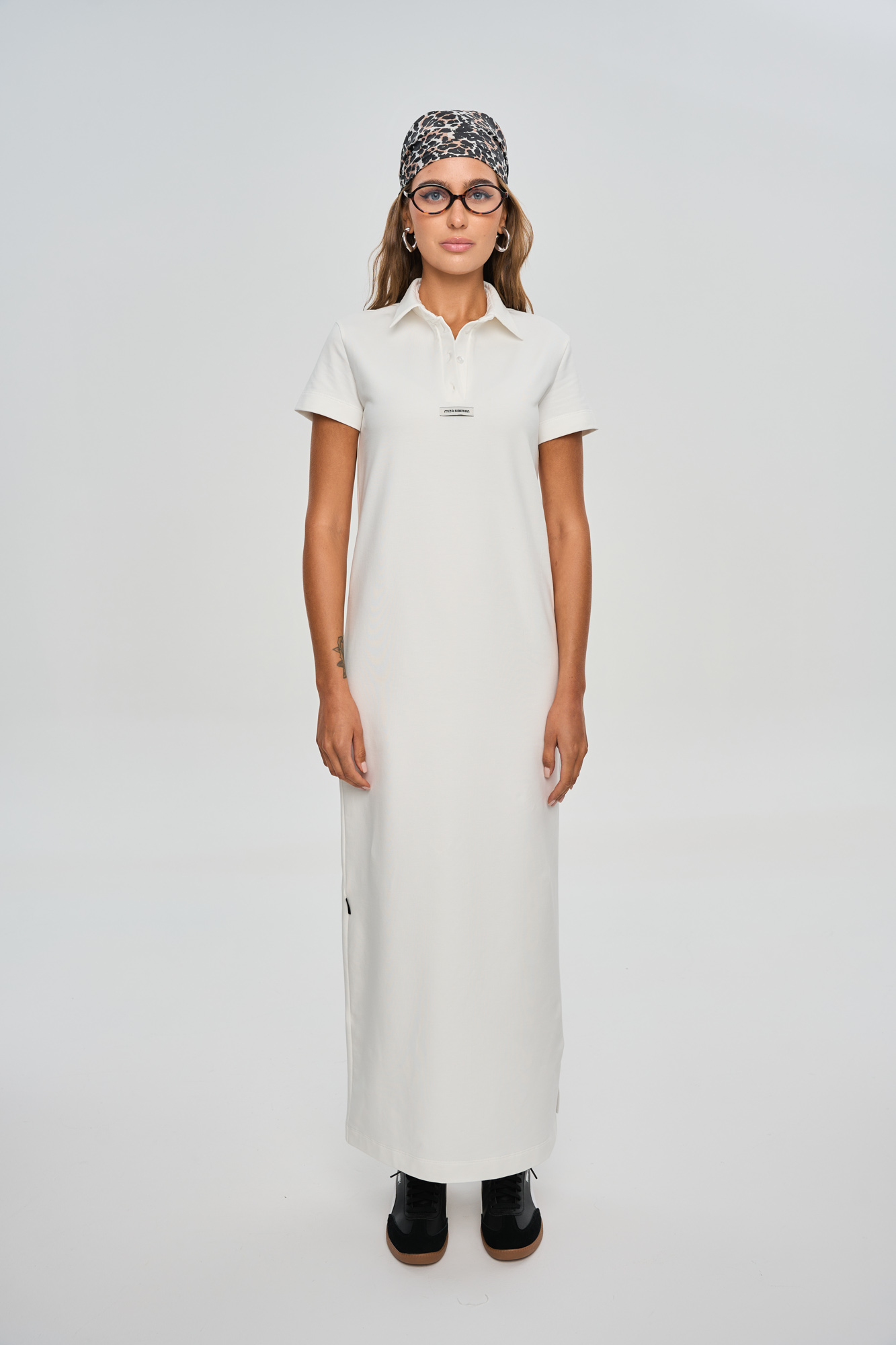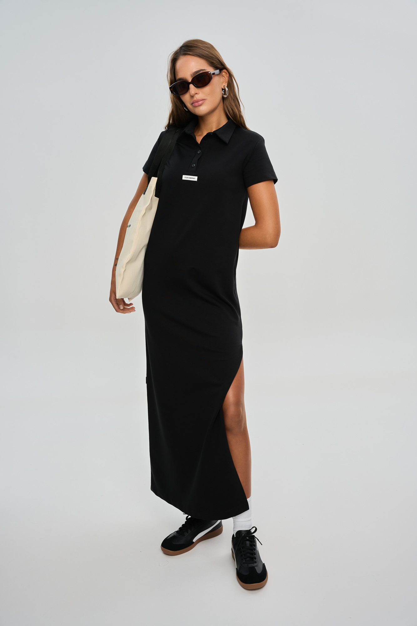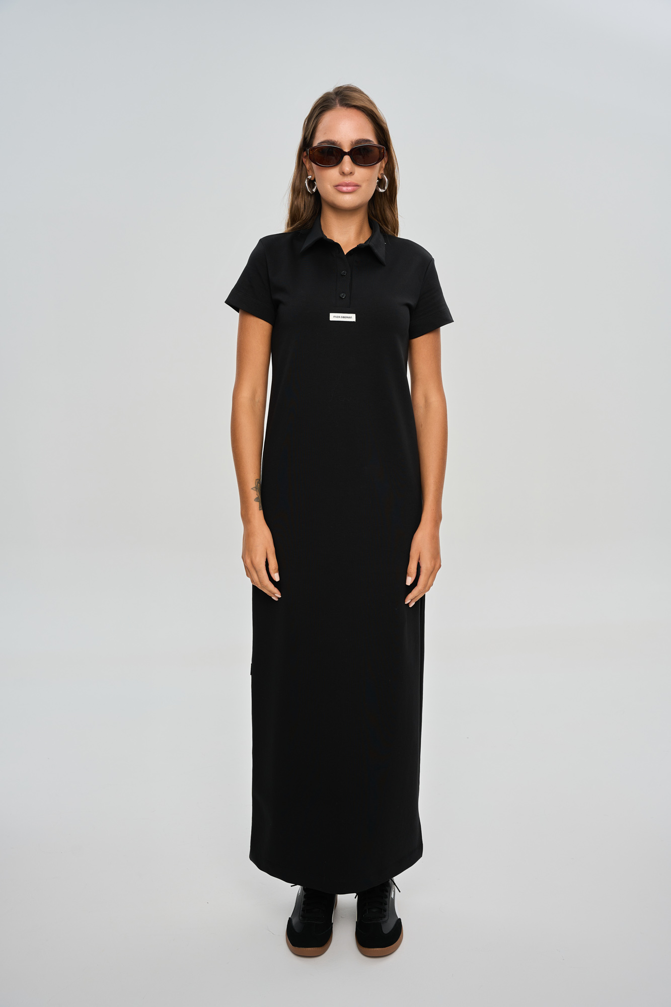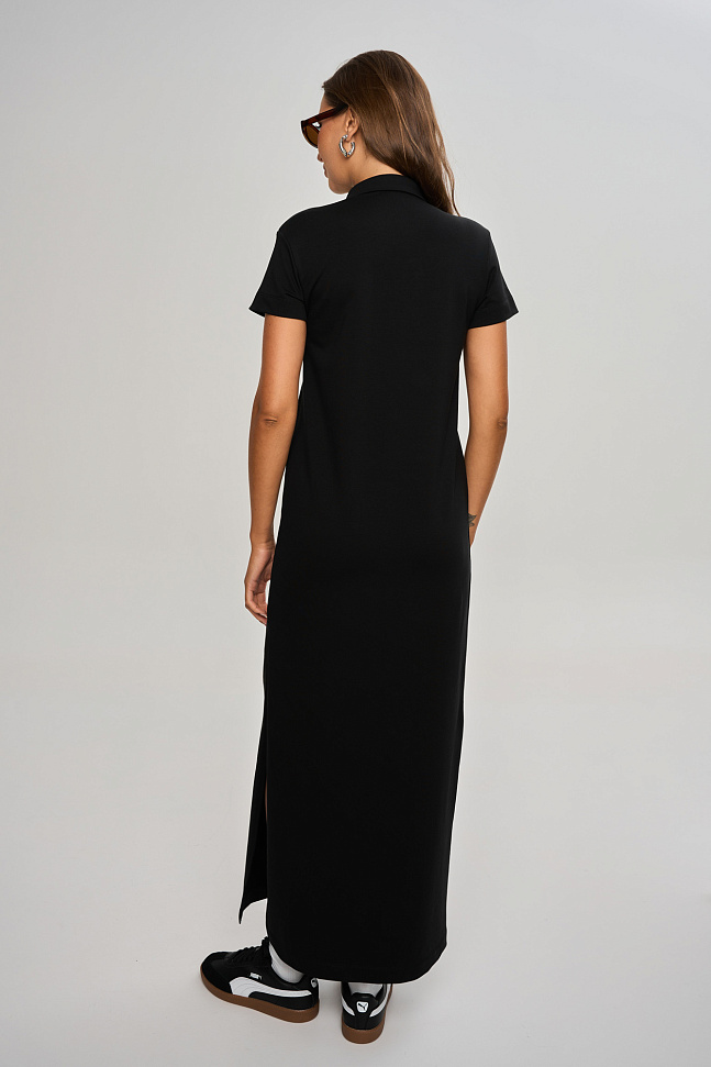 Платье прямого кроя в длине макси, с воротником поло.